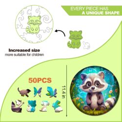 Children Wooden Jigsaw Puzzle-Cute Raccoon