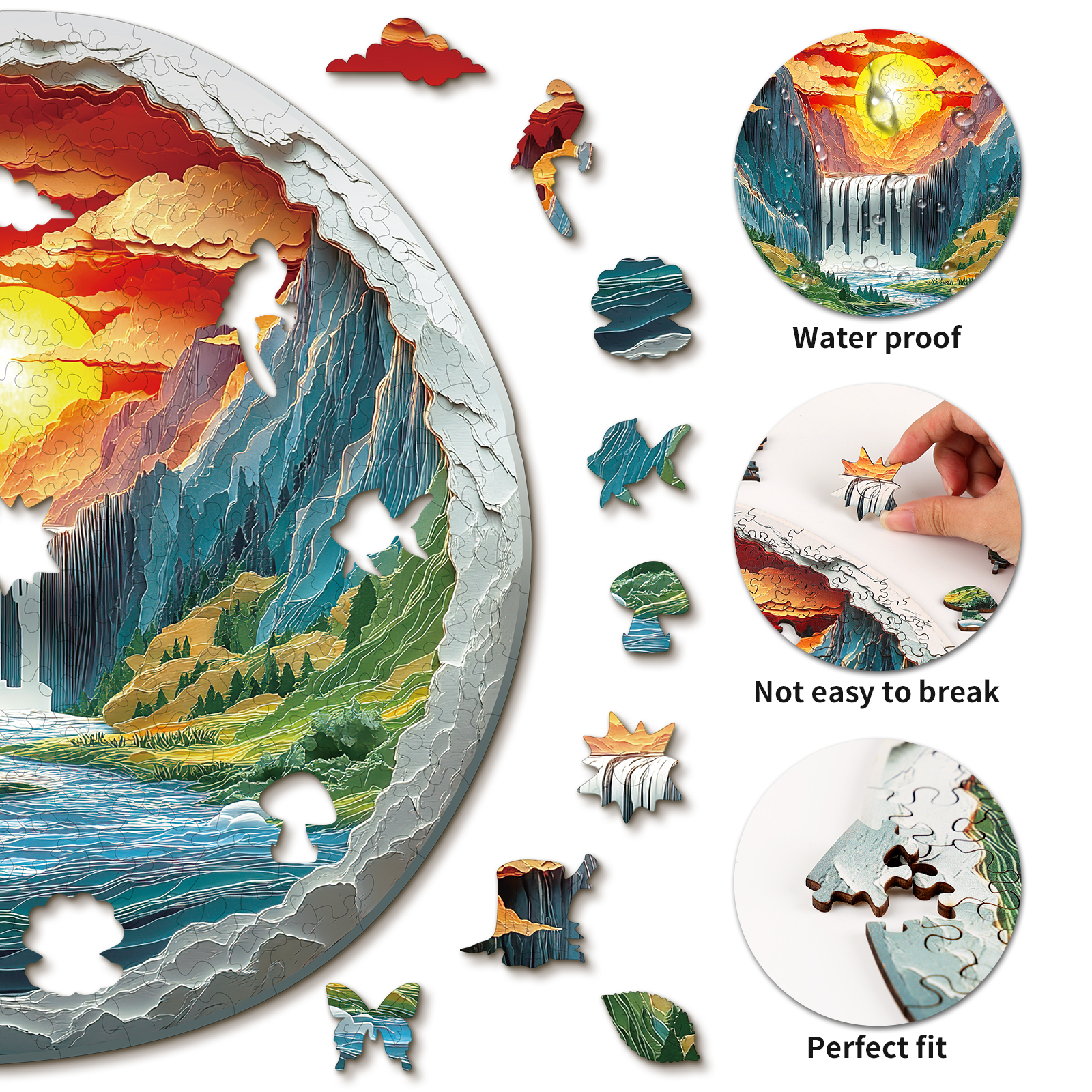 Wooden Jigsaw Puzzle – 3D Canyon Waterfall