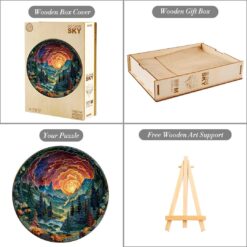 This wooden puzzle is a standout with its impressive 3D effect, creating a stunning sense of depth. The intricate design and use of vibrant colors make the completed puzzle visually striking and engaging. The theme adds a charming touch, making it not only a fun challenge to assemble but also a beautiful piece to display. It’s a unique and artistic puzzle that offers both a satisfying building experience and an eye-catching finished product.