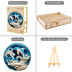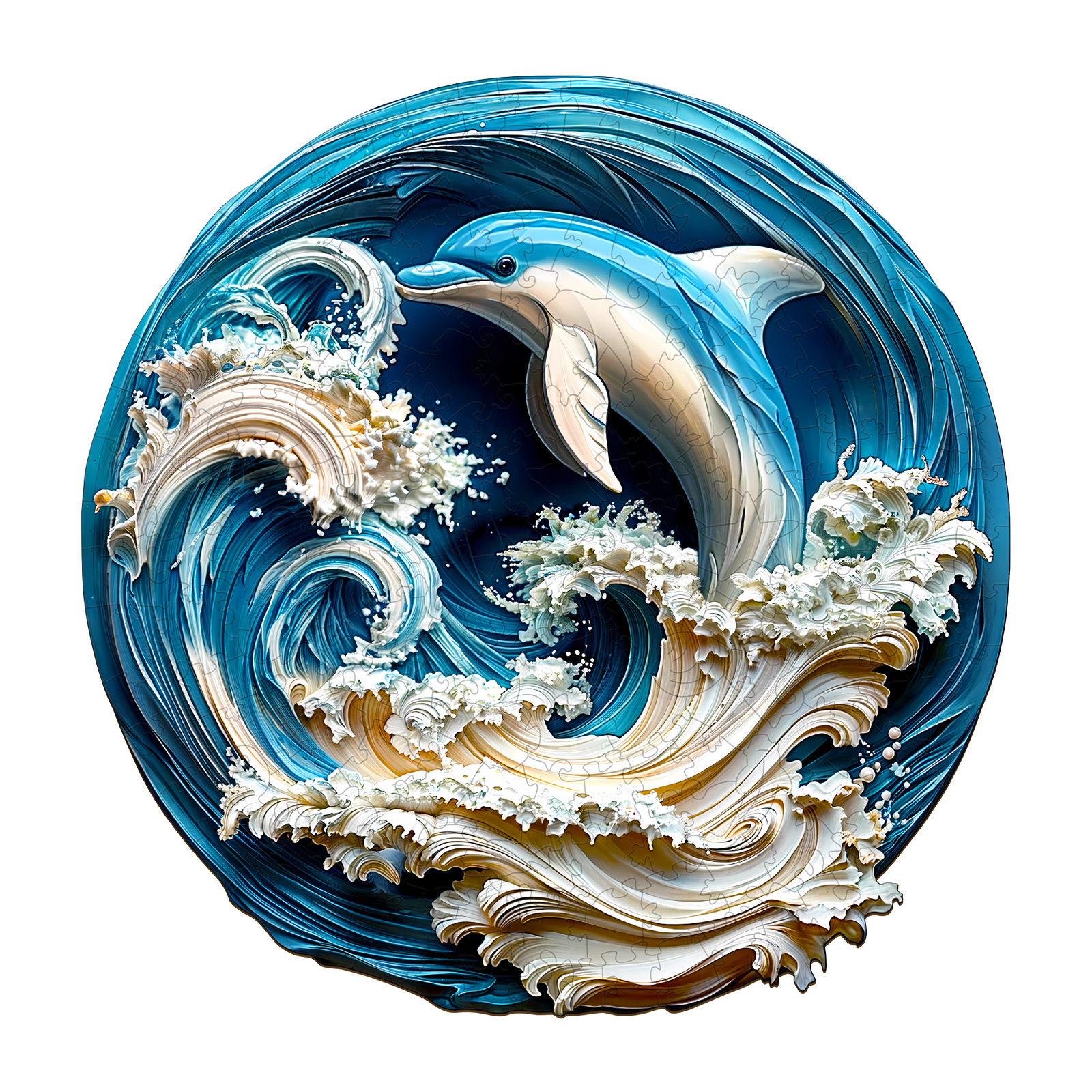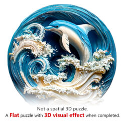 Dive into an ocean of tranquility and challenge with Kaayee’s “Leaping Dolphin Waves” wooden jigsaw puzzle. This stunning circular puzzle captures the dynamic beauty of a graceful dolphin arching through powerful, cresting waves. The artwork is rendered with incredible detail and a sense of three-dimensional movement, making the vibrant blues of the ocean and the frothy whitecaps come alive.