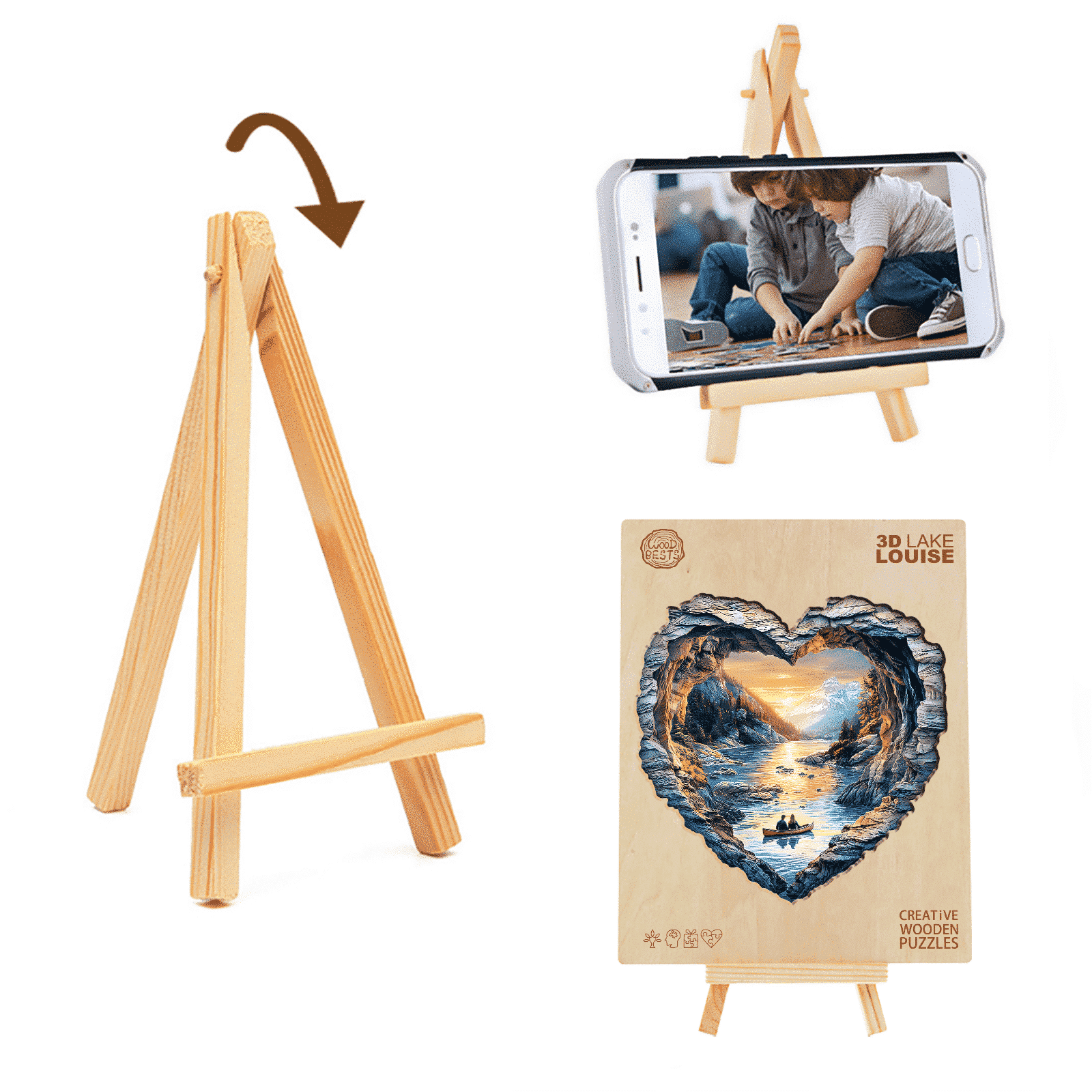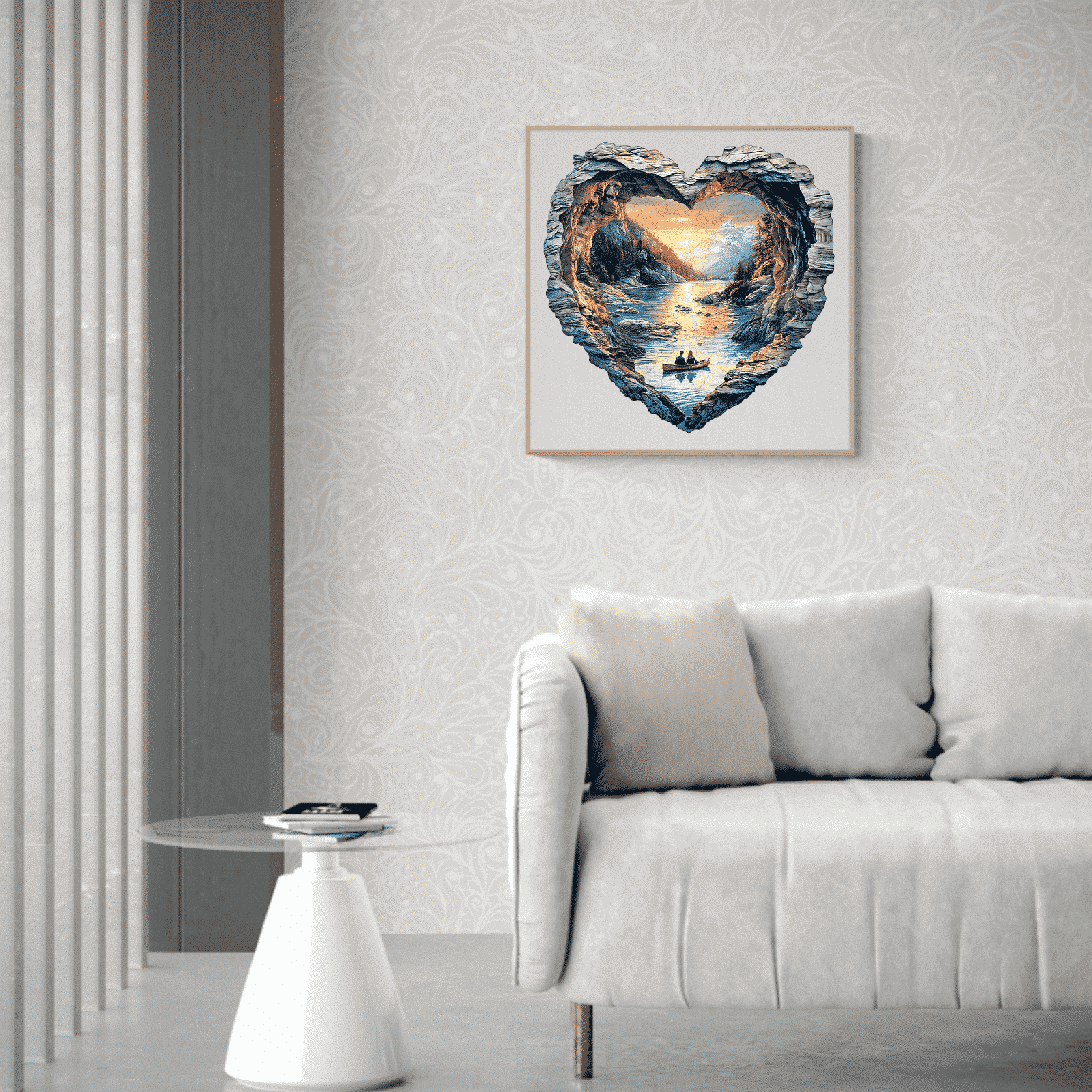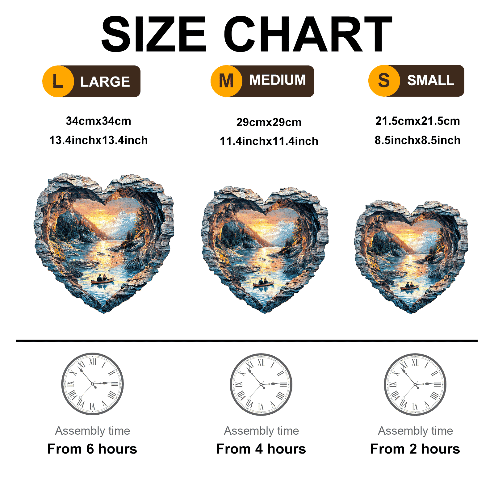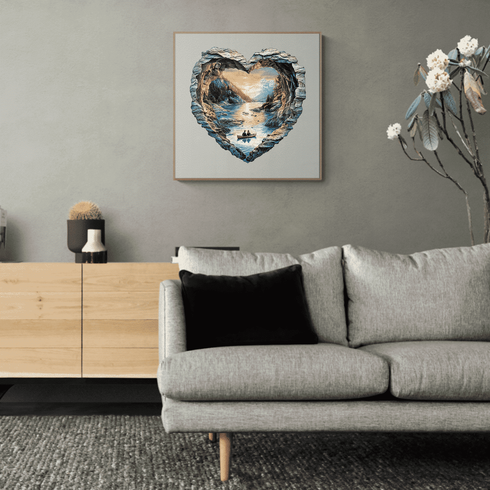 Experience the artistry of puzzling with our luxurious wooden jigsaw puzzle, crafted for enthusiasts who appreciate beauty and precision. This heart-shaped puzzle features a breathtaking 3D effect, showcasing a serene lakeside scene at sunset. Every detail, from the vivid colors to the intricate textures, invites you into a world of tranquility and romance.