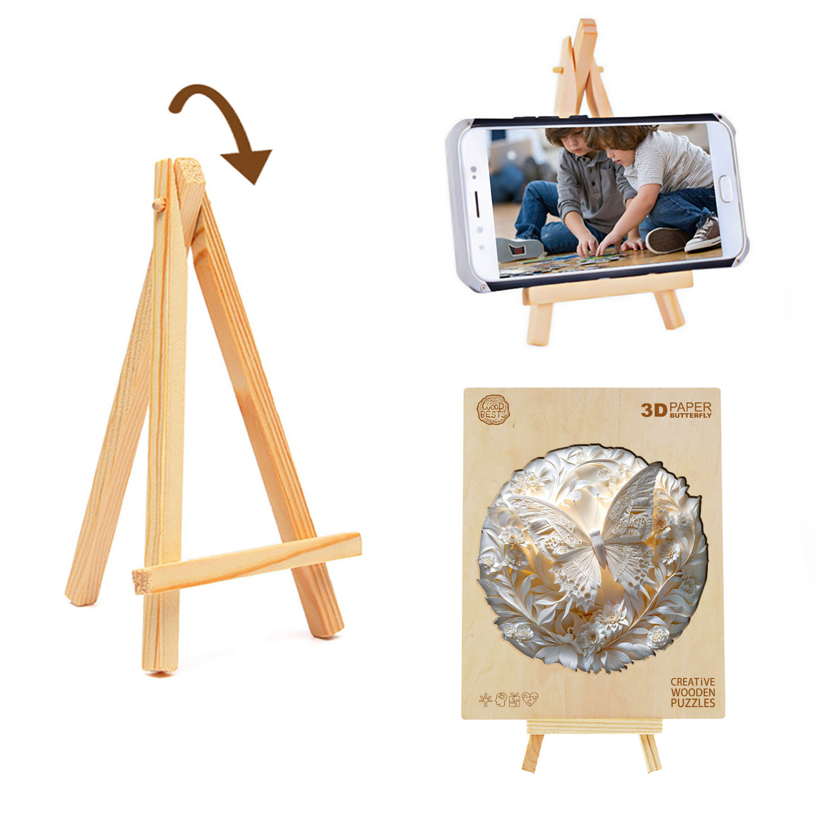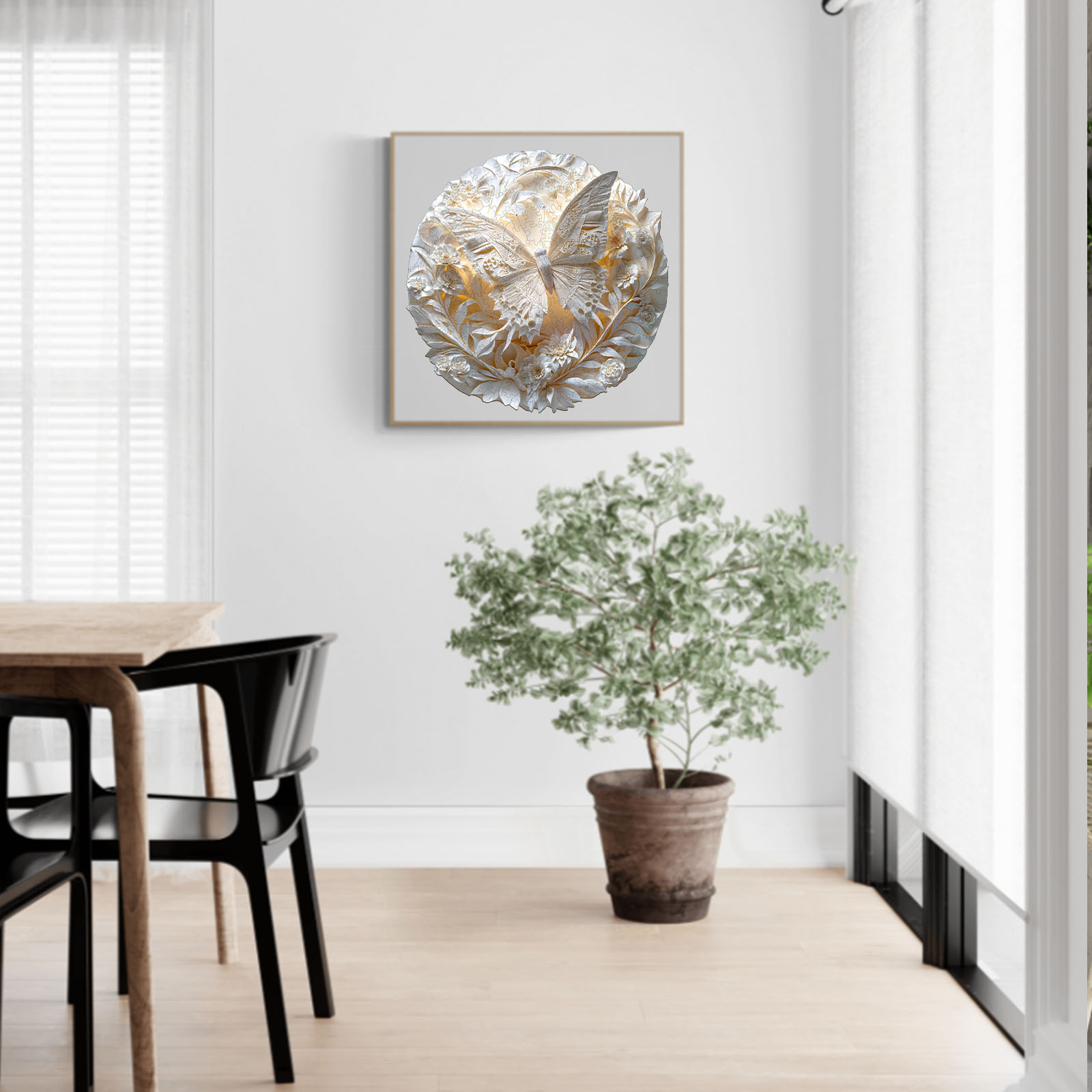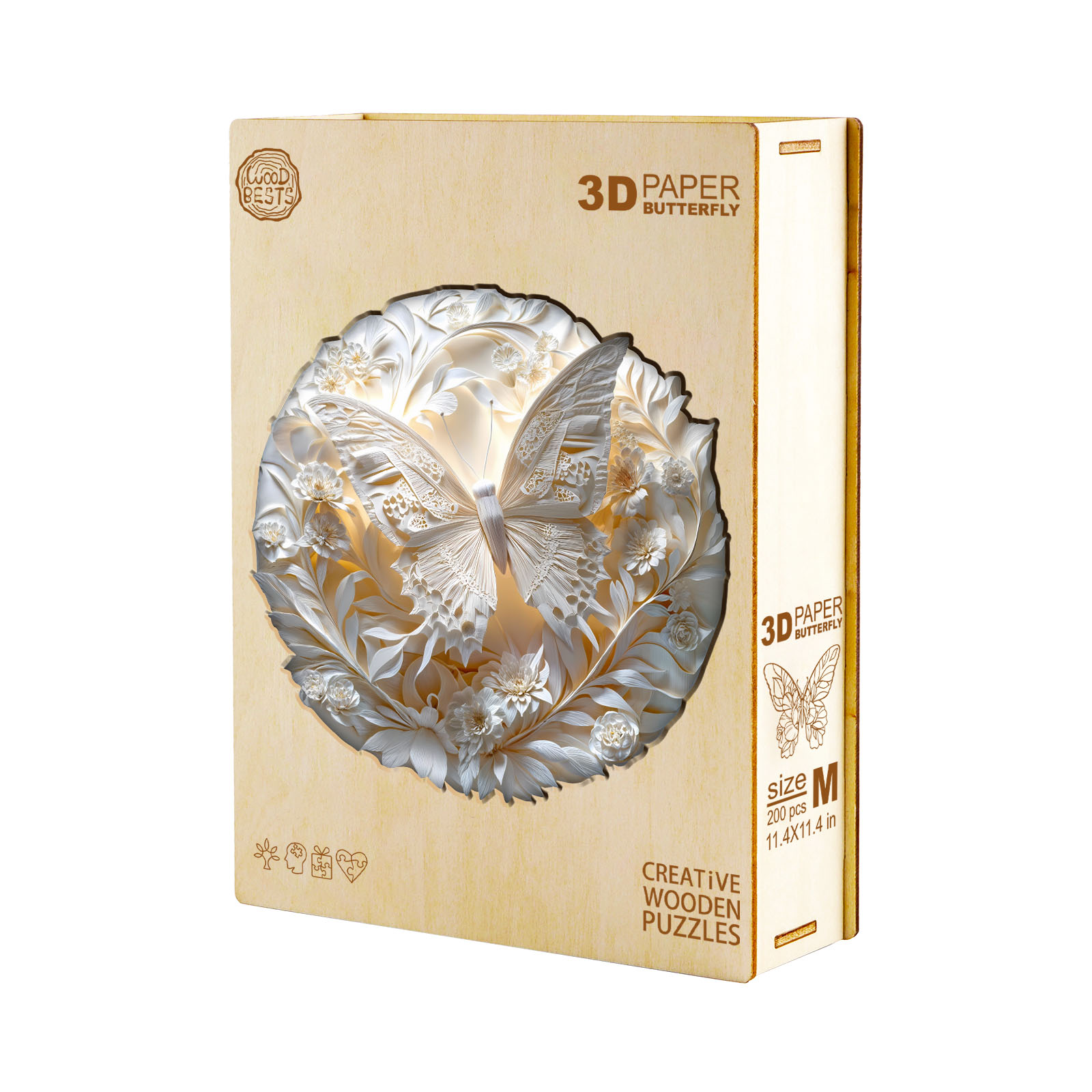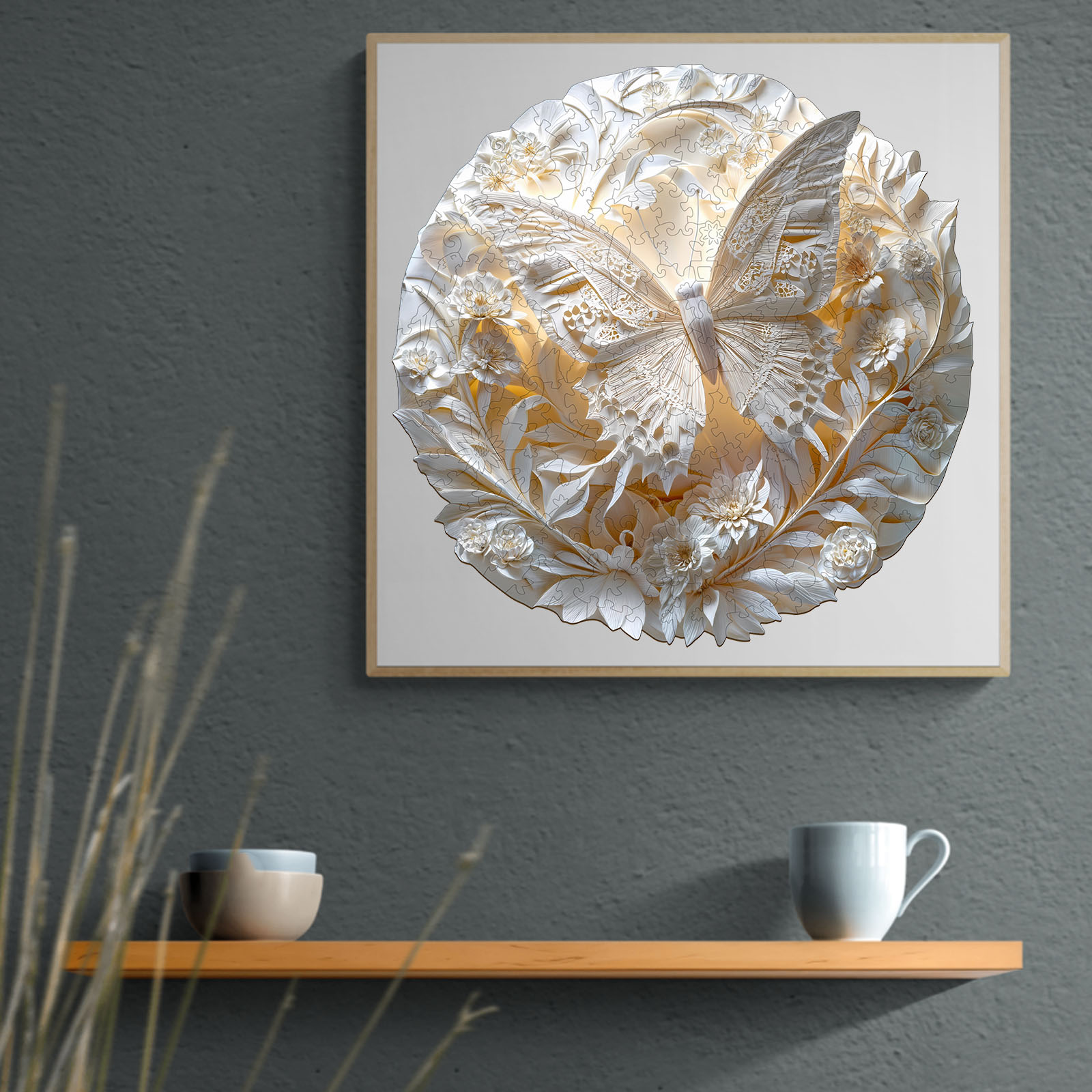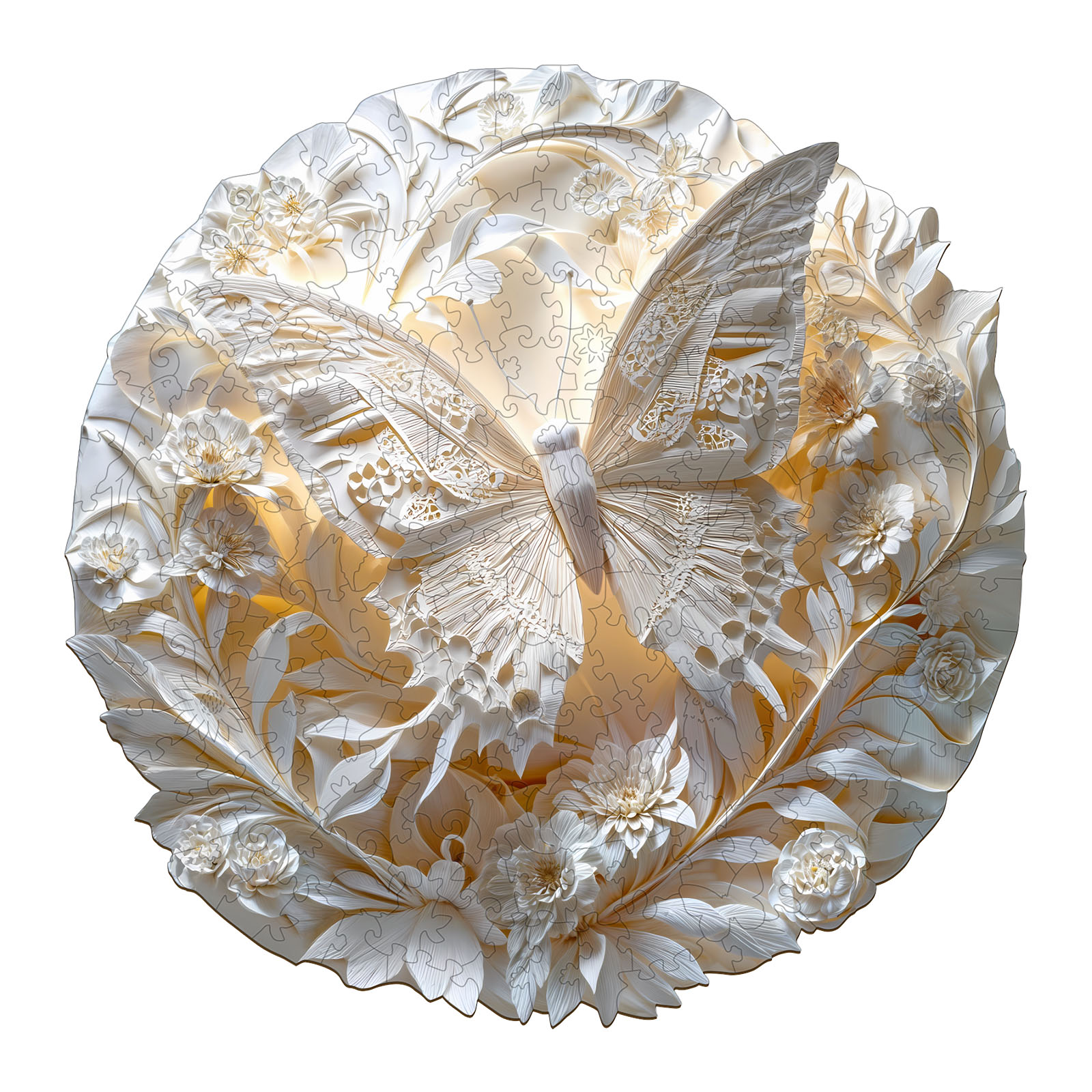 Discover the serene beauty of this exquisite Kaayee wooden puzzle, featuring a delicate butterfly amidst an intricate floral design. Rendered in stunning shades of white and cream, this puzzle highlights the intricate details of the butterfly’s wings and the surrounding blossoms, creating a beautiful monochromatic work of art. The unique cut of each wooden piece adds to the challenge and satisfaction of completing this elegant design. Perfect for those who appreciate refined aesthetics, nature’s beauty, and the rewarding experience of a high-quality wooden puzzle.