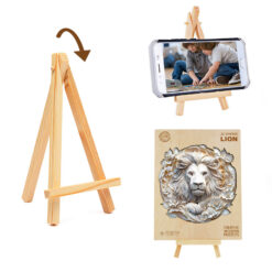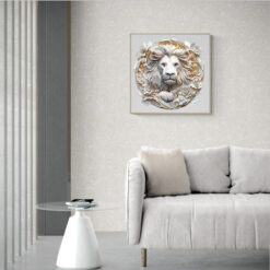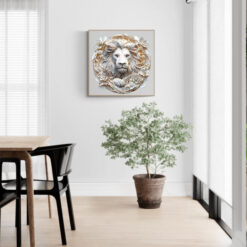 This intricate wooden jigsaw puzzle features a majestic white lion at its center, surrounded by an elegant frame of delicately carved flowers and leaves. The detailed craftsmanship highlights the lion’s flowing mane and serene expression, blending seamlessly with the floral elements to create a harmonious and captivating design. Each piece is meticulously cut, showcasing the artistry of wooden puzzle-making.