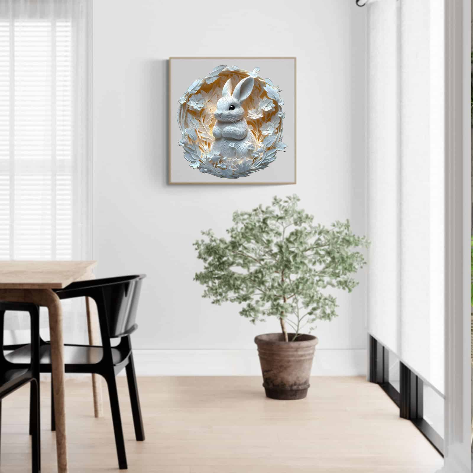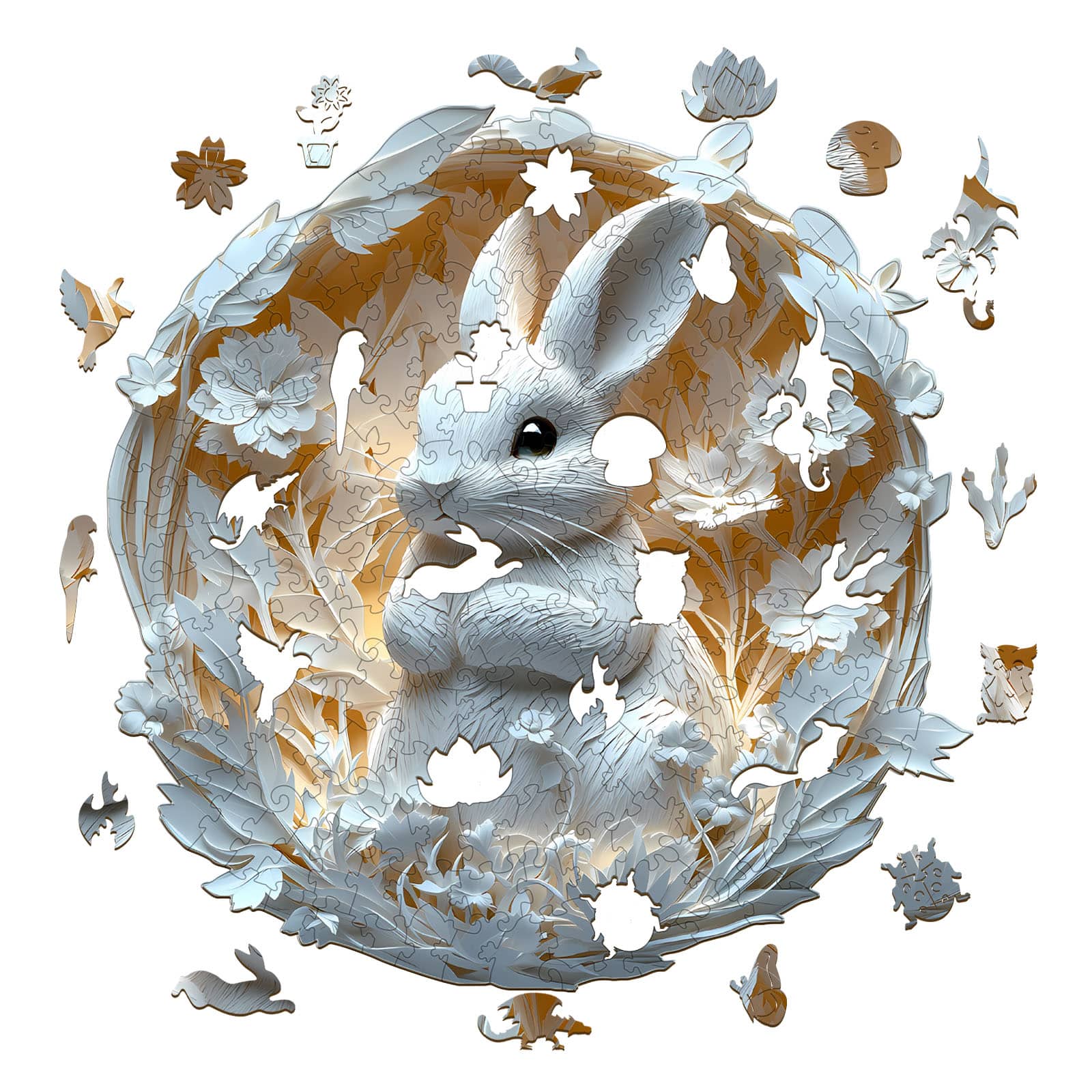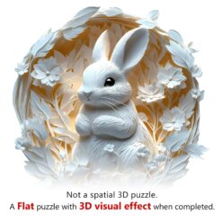 Are you also attracted by the furry appearance of rabbits? People love rabbits for their charming personalities and playful nature. Their adorable appearance, with long ears and expressive eyes, captures hearts instantly. The rabbit on this puzzle is surrounded by white flowers that looks like it was carved out of paper. 3D vision is our new puzzle series which uses unique line and patterns to make flat puzzles look like 3D puzzles.