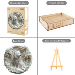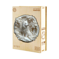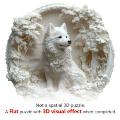 Experience the serene charm of a Samoyed with this exquisite Kaayee wooden puzzle. This beautiful puzzle depicts the beloved “smiling dog” breed, rendered in a stunning, monochromatic white relief style, nestled within a lush, intricate floral and natural setting. The detailed carving effect of the Samoyed’s fluffy fur and the surrounding blossoms creates a captivating three-dimensional appearance. Each carefully crafted wooden piece contributes to the elegant artistry, offering a delightful and challenging puzzle experience. It’s an ideal gift for dog lovers, particularly Samoyed enthusiasts, and anyone who appreciates unique, artistic puzzles.