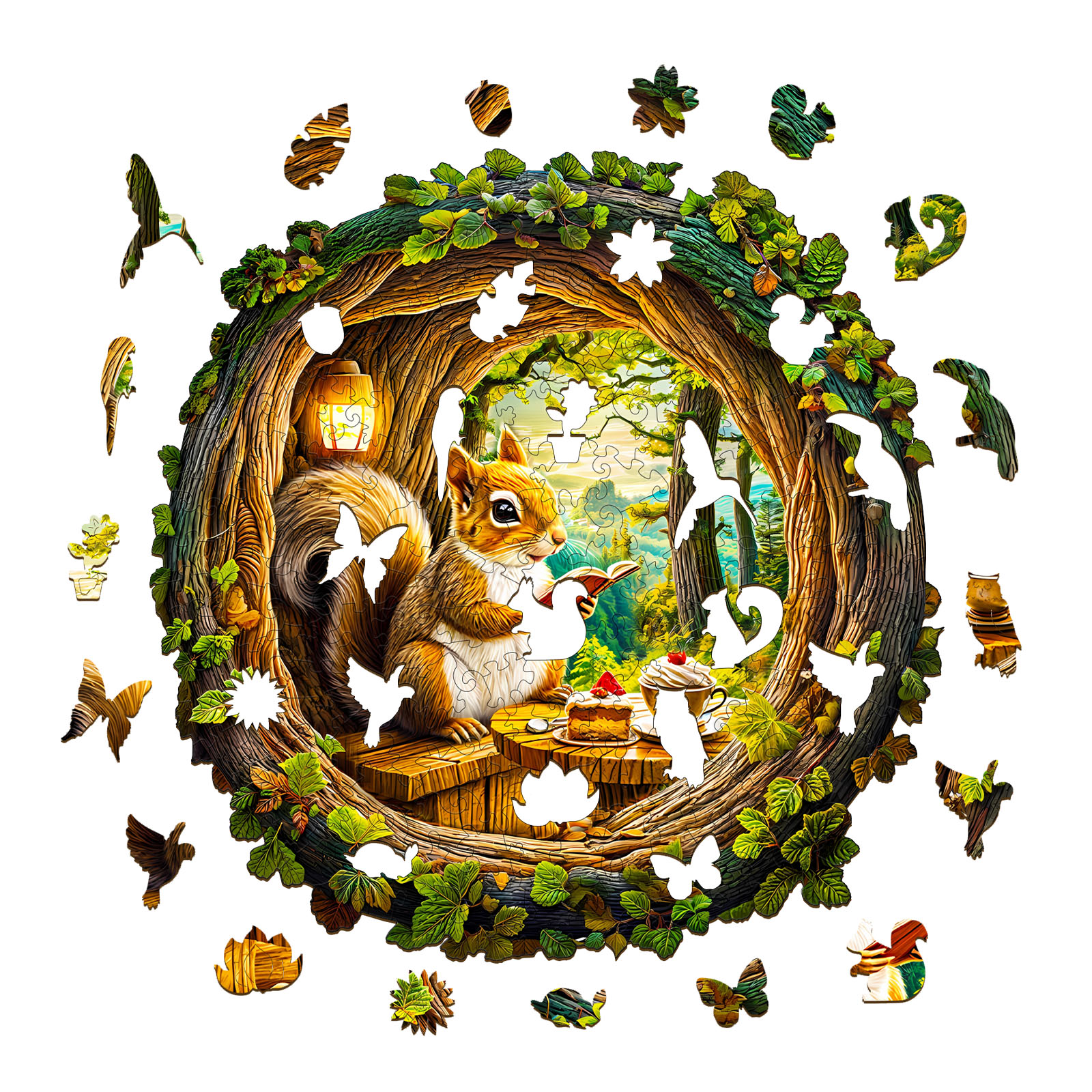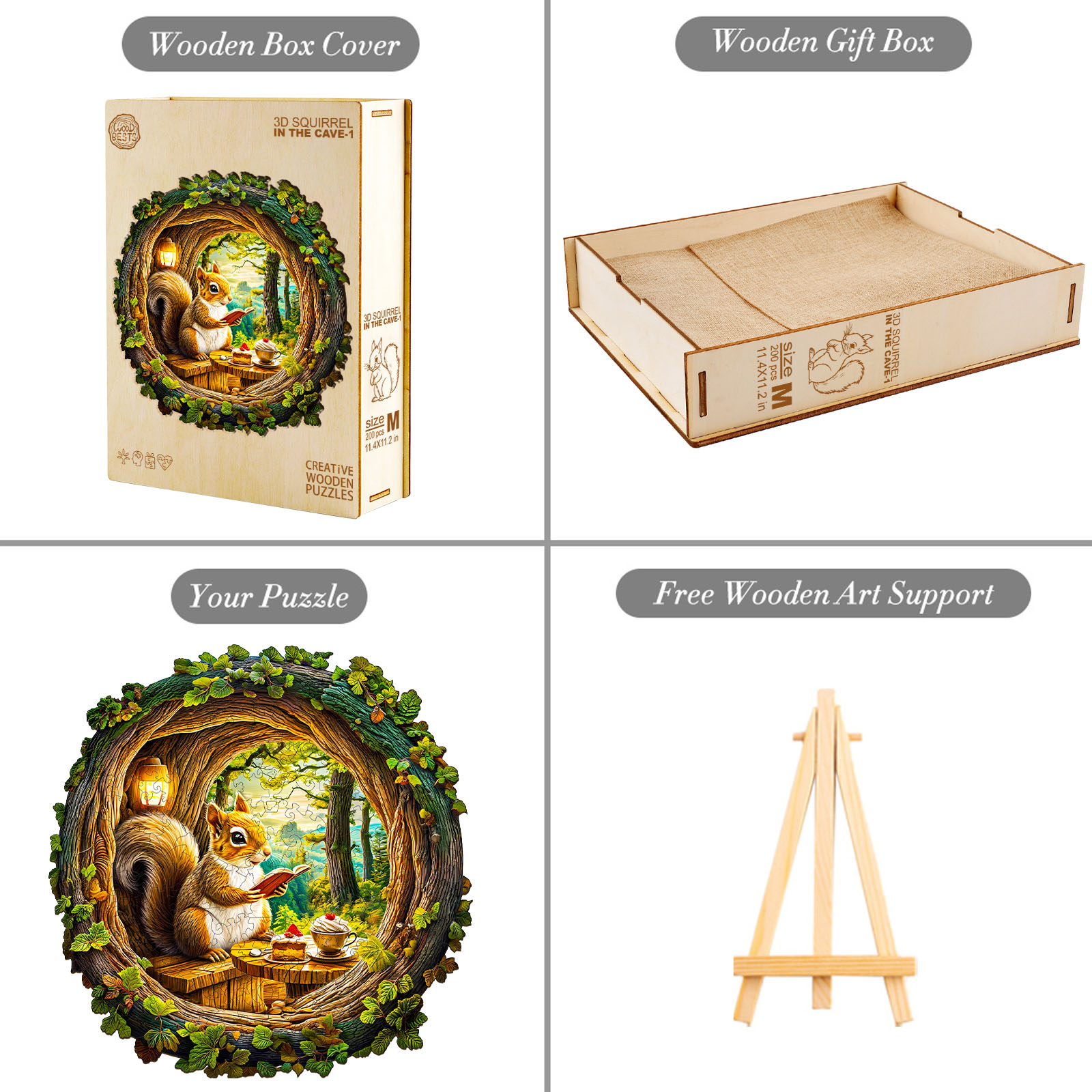 Wooden Jigsaw Puzzle – 3D squirrel in the cave-1