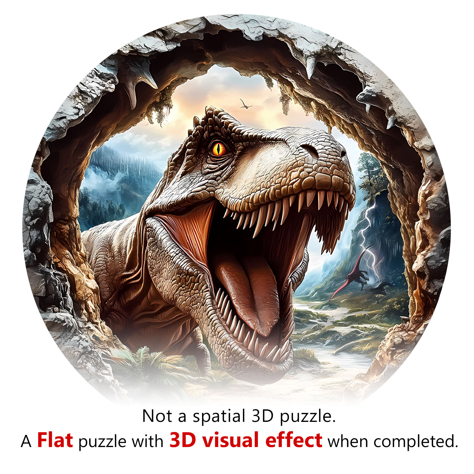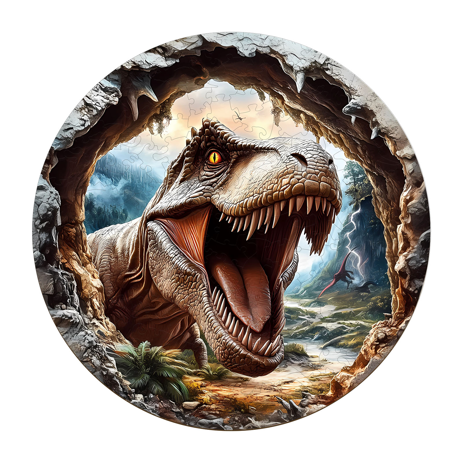 Unleash prehistoric excitement with the Kaayee T-Rex Wooden Puzzle, where adventure roars to life! This eye-catching round puzzle features a hyper-realistic Tyrannosaurus rex bursting through a rocky cave—its jaws wide open in a dramatic display of ancient power. With stunning detail and vibrant colors, it captivates both young dinosaur fans and seasoned puzzle lovers alike.Crafted from premium, eco-friendly wood, each piece is laser-cut for a snug fit and satisfying assembly experience. The unique round shape and dynamic artwork offer an extra layer of challenge and visual delight. Ideal as a gift, collectible, or family bonding activity, this puzzle turns any tabletop into a Jurassic thrill ride.