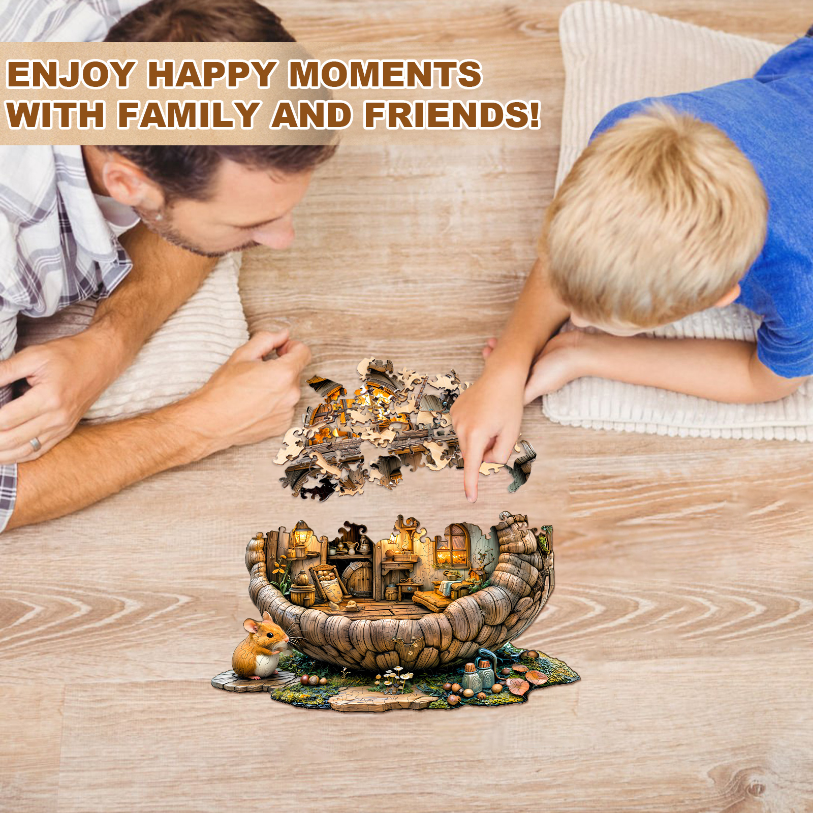 Step into a storybook world with the Kaayee Wooden Jigsaw Puzzle – Pumpkin Mouse House. Shaped like a charming pumpkin cottage, this puzzle reveals a warm, lantern-lit home where tiny details bring the scene to life — from rustic shelves filled with jars to a cozy loft glowing with firelight. A curious little mouse waits outside, adding a touch of whimsy to the enchanting woodland setting. Made from premium wood with precision-cut pieces, this puzzle combines imaginative design with a satisfying building experience. Perfect for families, collectors, and anyone who loves fairy-tale charm in their puzzles.