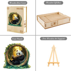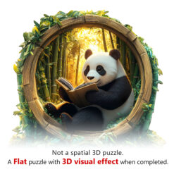Step into a world of peace and wonder with this beautifully crafted wooden jigsaw puzzle featuring an adorable panda reading a book inside a bamboo ring. Surrounded by glowing sunlight and lush greenery, this heartwarming scene captures the perfect balance of nature, curiosity, and charm. Made from high-quality wood, each uniquely shaped piece offers a satisfying tactile experience and a long-lasting finish. Whether you’re an avid puzzler or looking for a thoughtful gift, this puzzle is ideal for both kids and adults who love nature, animals, and relaxing challenges.
