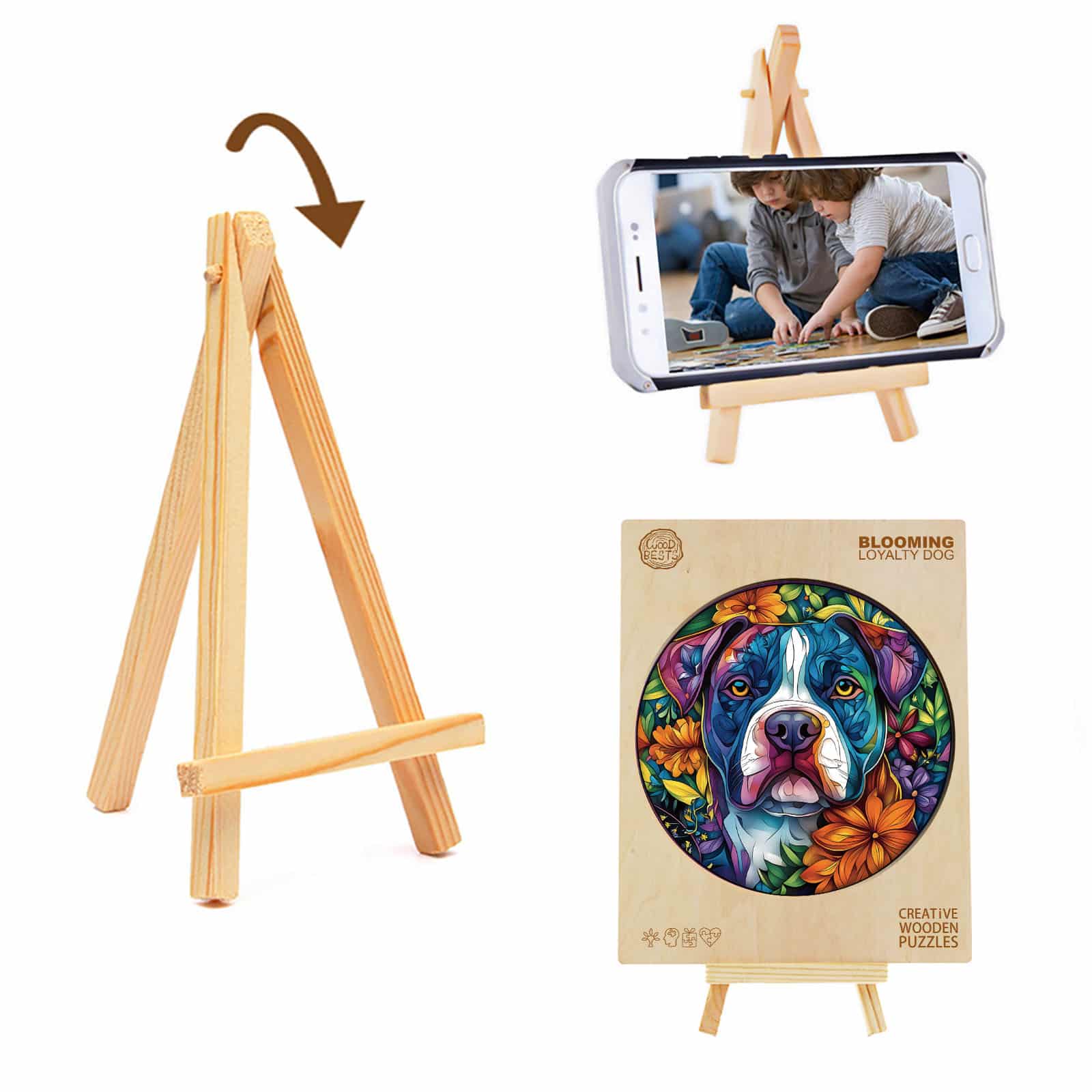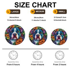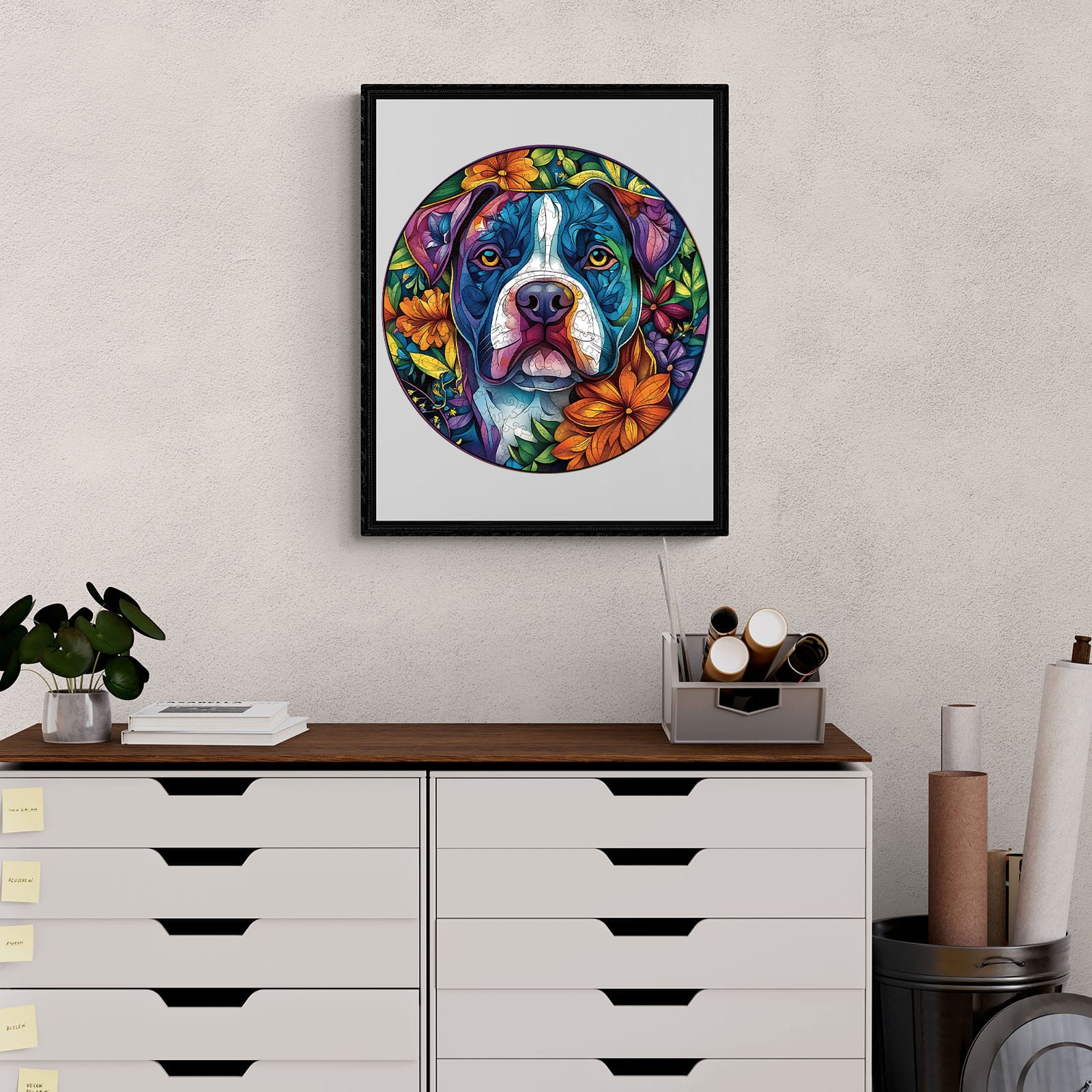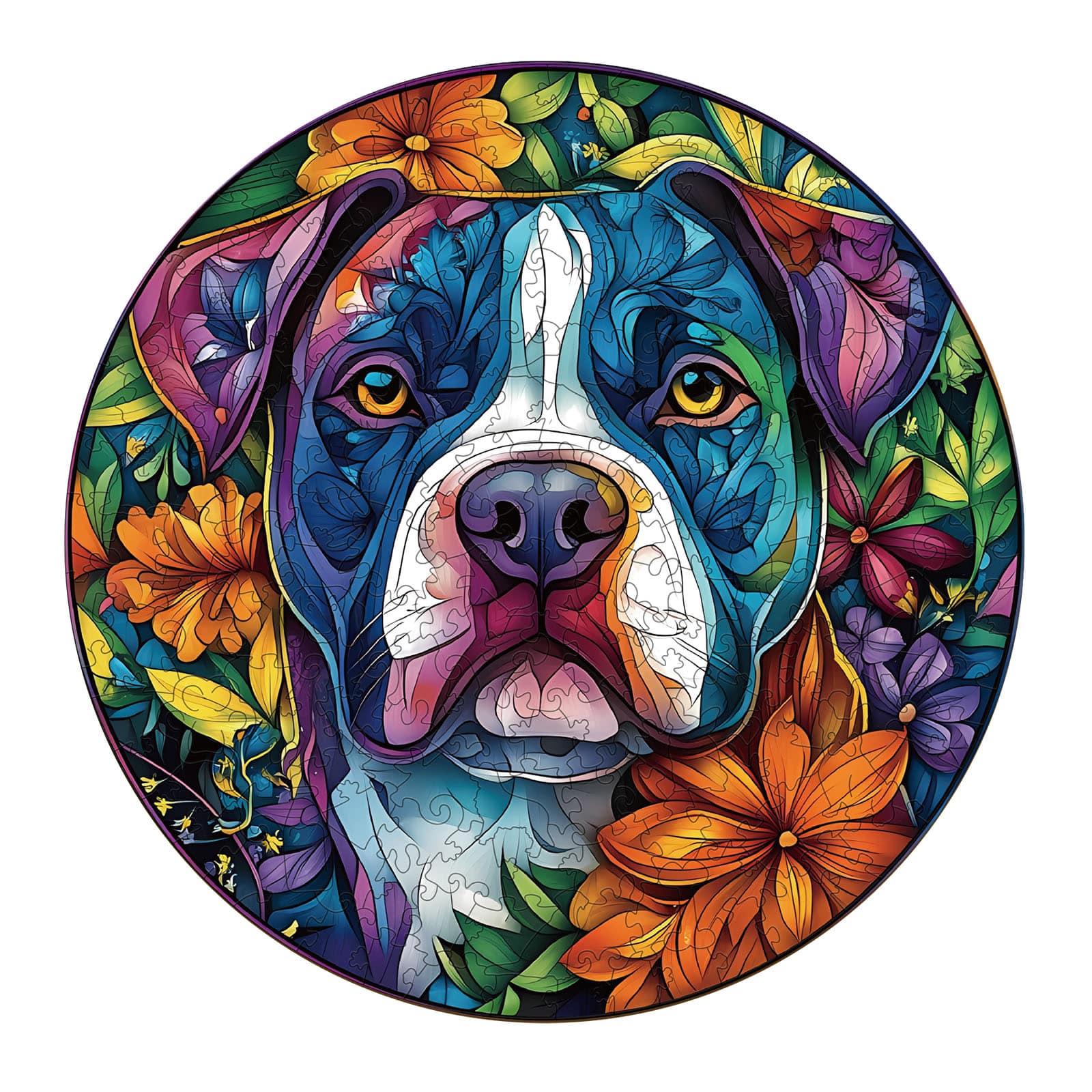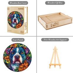 Celebrate your love for dogs and puzzles with this vibrant round wooden jigsaw puzzle, featuring a stunning and artistic portrait of a boxer dog surrounded by a lush floral arrangement. The bold, colorful design combines elegance with charm, offering a unique puzzling experience that’s as beautiful as it is rewarding.