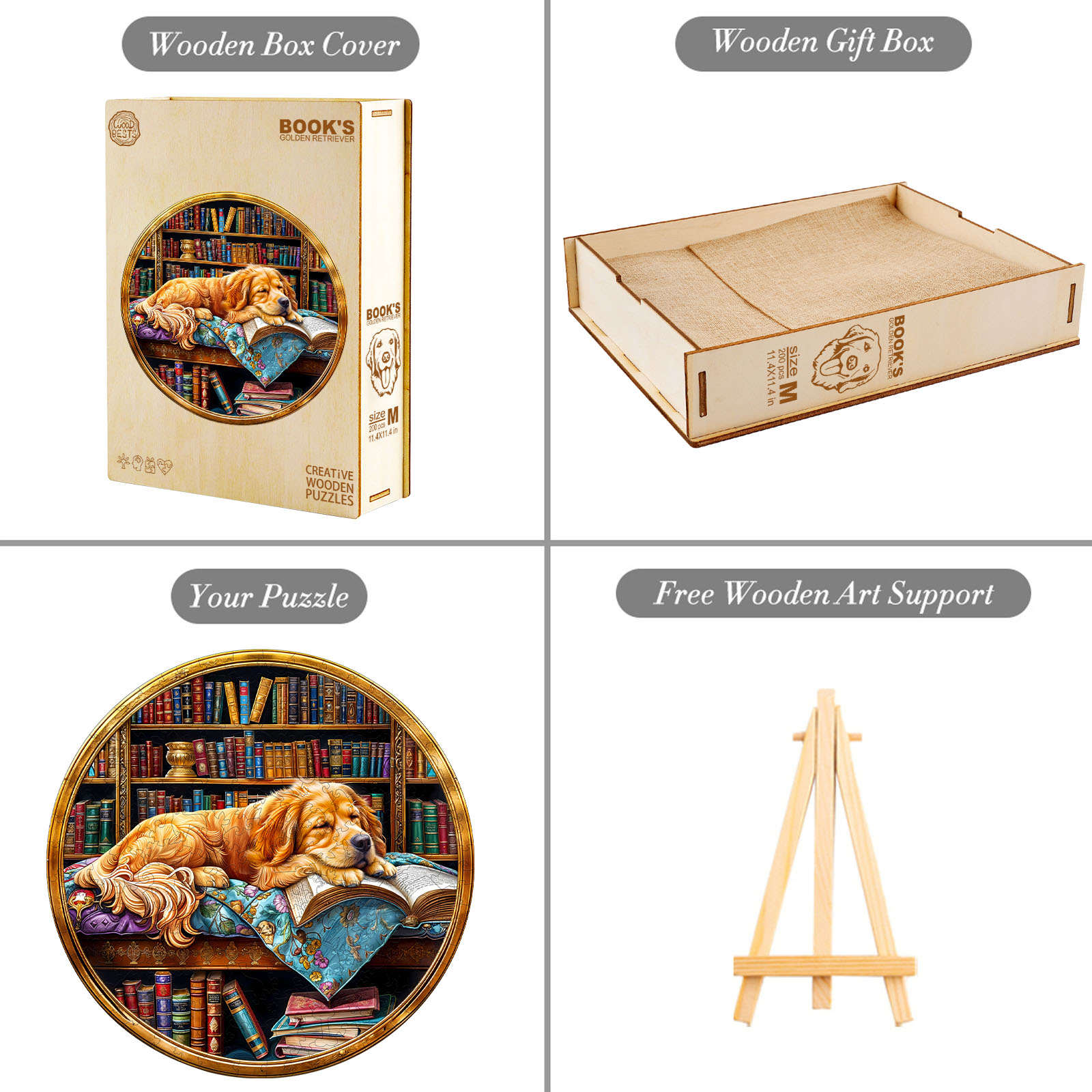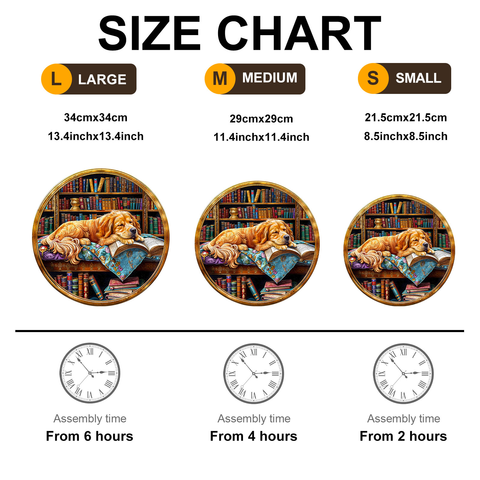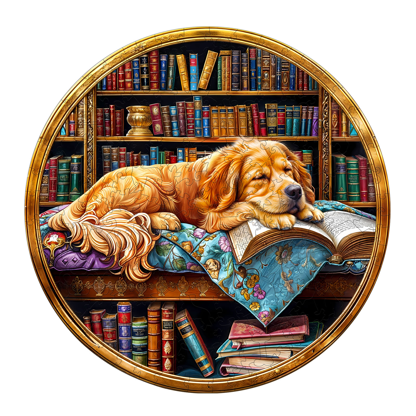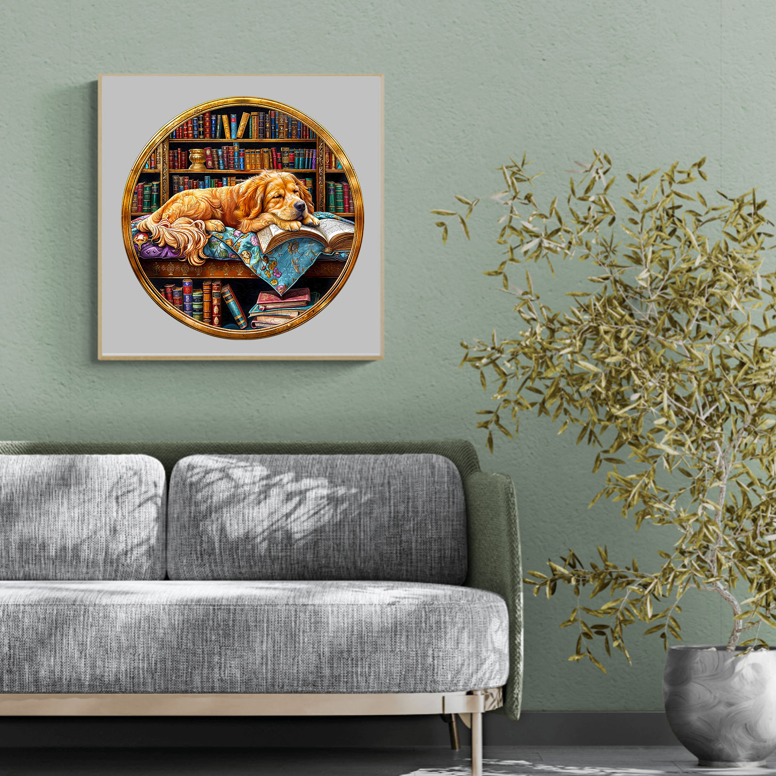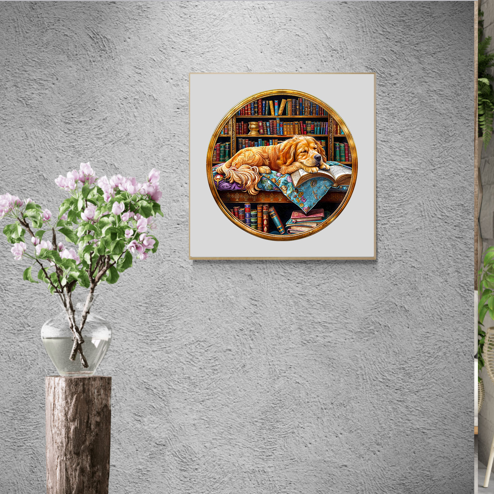 Step into a world of warmth and wisdom with the Kaayee “Cozy Library Dreams” Wooden Puzzle. This beautifully detailed round puzzle features a golden retriever peacefully napping on an embroidered blanket, head resting on an open book, surrounded by rich wooden shelves brimming with colorful, vintage books. Crafted with precision-cut wooden pieces and intricate laser engraving, this puzzle offers a delightful challenge and a heartwarming scene perfect for dog lovers and bookworms alike. A charming addition to any collection and a mindful gift for puzzle enthusiasts of all ages.