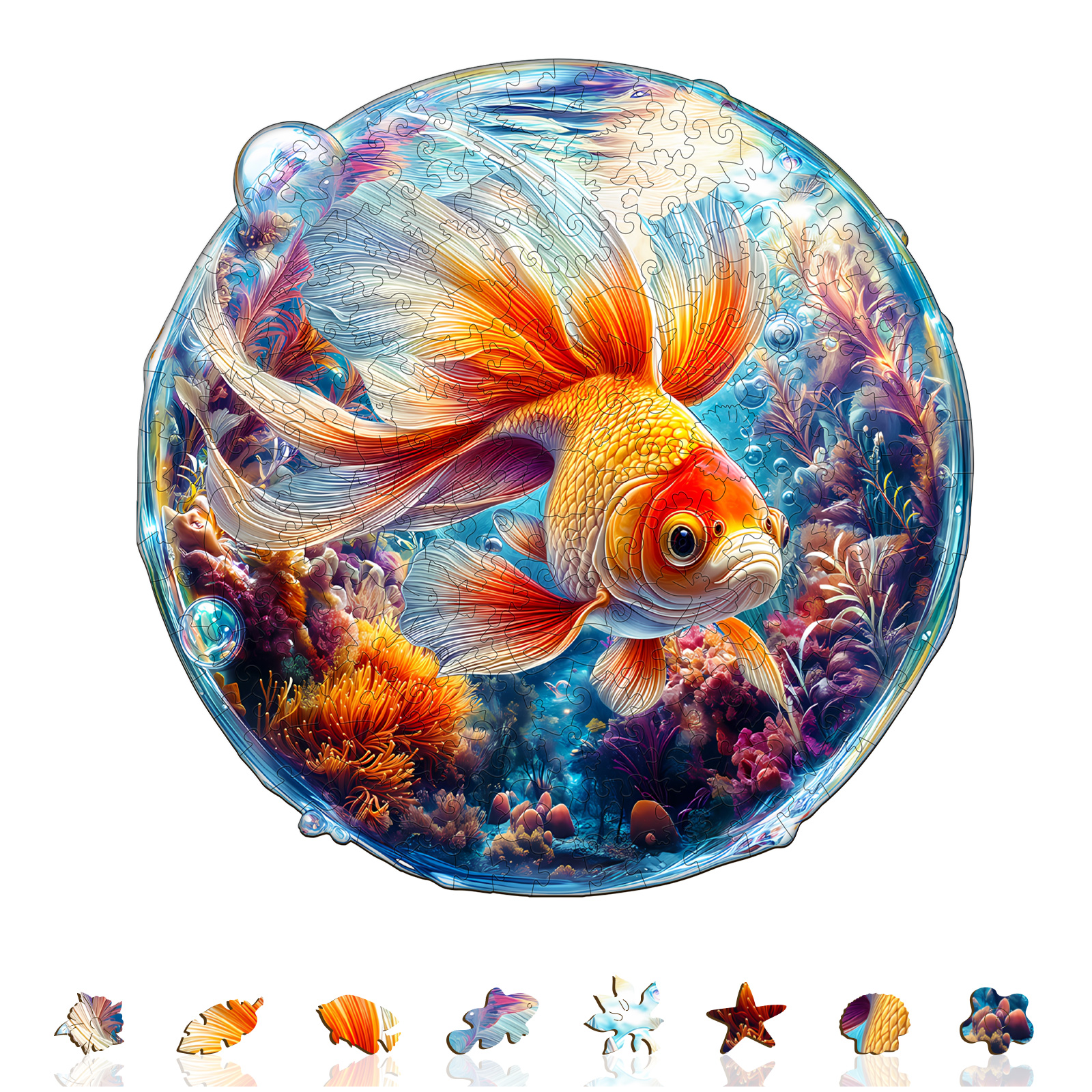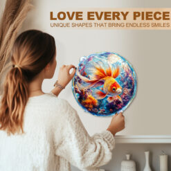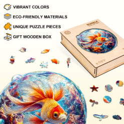 The Kaayee wooden puzzle brings the vibrant world of the ocean to life with this stunning goldfish design. Featuring brilliant shades of orange, red, and gold, the fish swims gracefully amid colorful coral and swirling bubbles. Every puzzle piece is laser-cut with precision, ensuring a satisfying assembly process that reveals a breathtaking circular artwork. Whether you’re a puzzle enthusiast, an ocean lover, or simply looking for a unique decorative piece, this goldfish puzzle offers both relaxation and a touch of aquatic elegance.