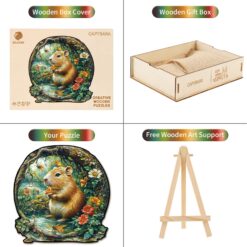Immerse yourself in the enchanting world of nature with this premium wooden jigsaw puzzle, featuring a delightful capybara at the heart of a vibrant woodland scene. Surrounded by colorful flowers, shimmering water, and lively forest creatures, this puzzle brings the magic of the wild to life with breathtaking detail and artistry.