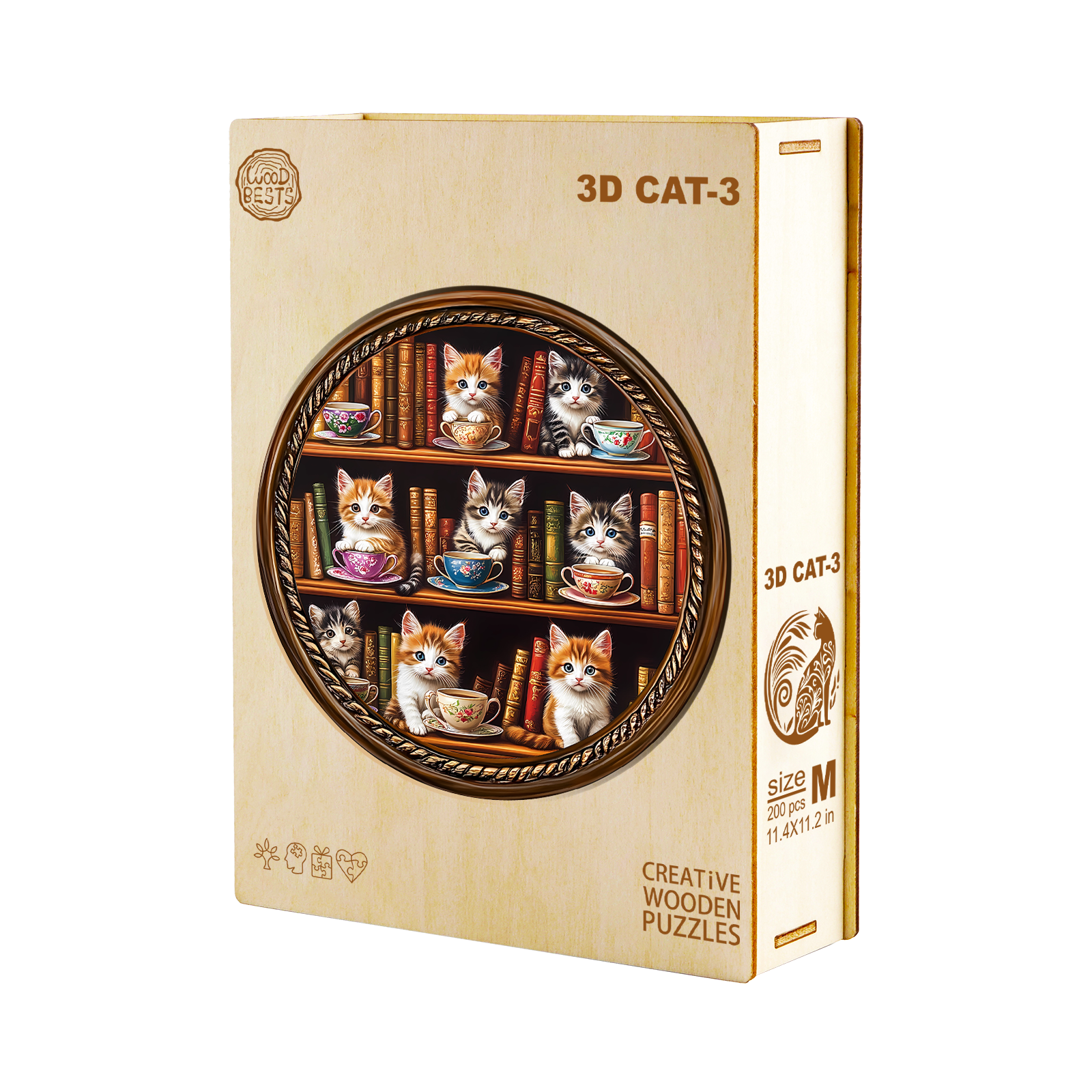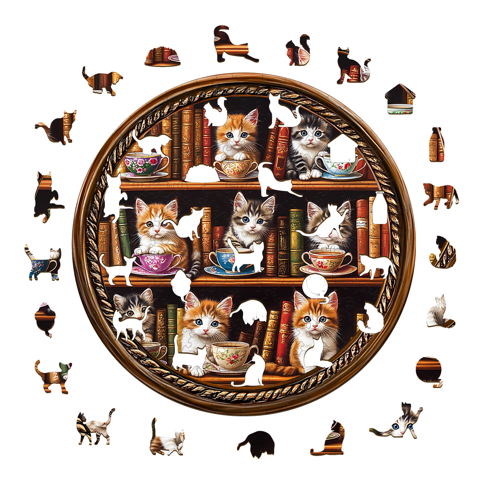 Bring charm and coziness to your puzzle time with this delightful Kaayee round wooden puzzle, featuring adorable kittens nestled in vintage teacups on a classic bookshelf. Each kitten, with its fluffy fur and curious eyes, adds character and warmth to the scene, while the rich details of old books and floral china offer a touch of nostalgia.Crafted from high-quality wood with precision-cut pieces, this puzzle is not only fun to assemble but also beautiful enough to display. Whether you’re a cat lover, tea enthusiast, or puzzle collector, this design is sure to bring joy and relaxation.