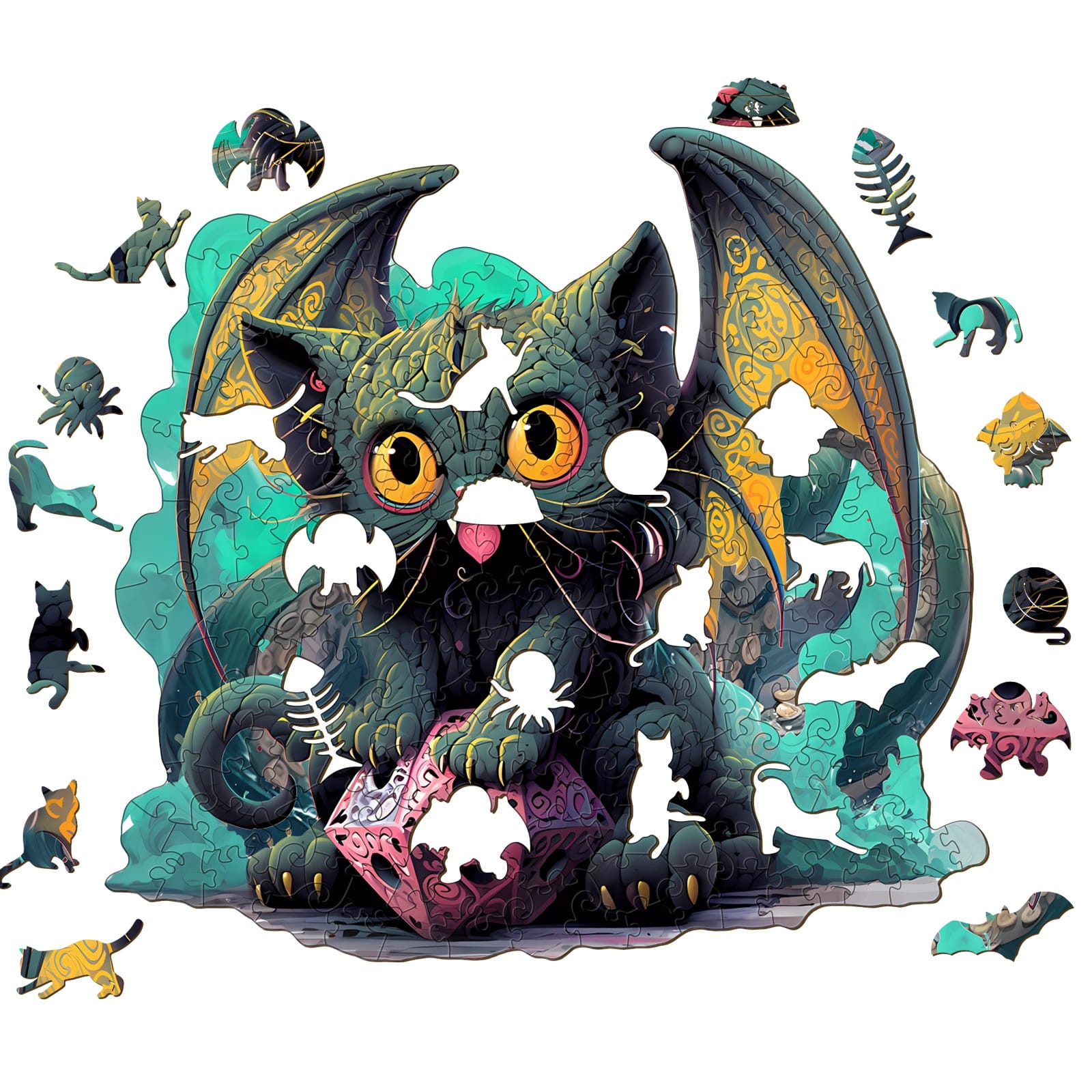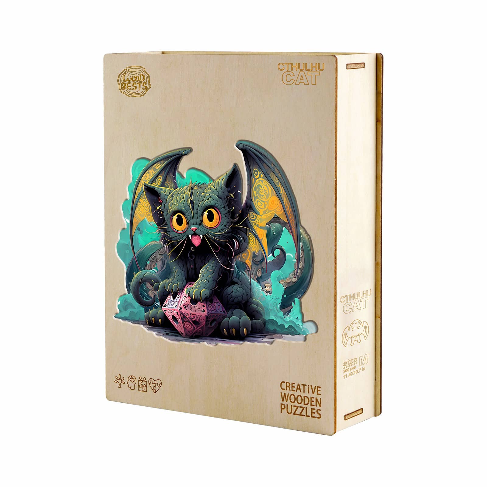 Cat Cthulhu is a mesmerizing blend of feline grace and eldritch horror. With dark, shadowy fur that shimmers with eerie green and purple hues, it moves with the silent elegance of a cat but with an unsettling presence. Its large, glowing eyes hold ancient wisdom, and around its mouth writhes a mass of small, twitching tentacles. From its back sprout leathery, bat-like wings, adding to its otherworldly aura. Preferring dark, hidden corners and surrounded by strange, ancient artifacts, Cat Cthulhu communicates through telepathic whispers