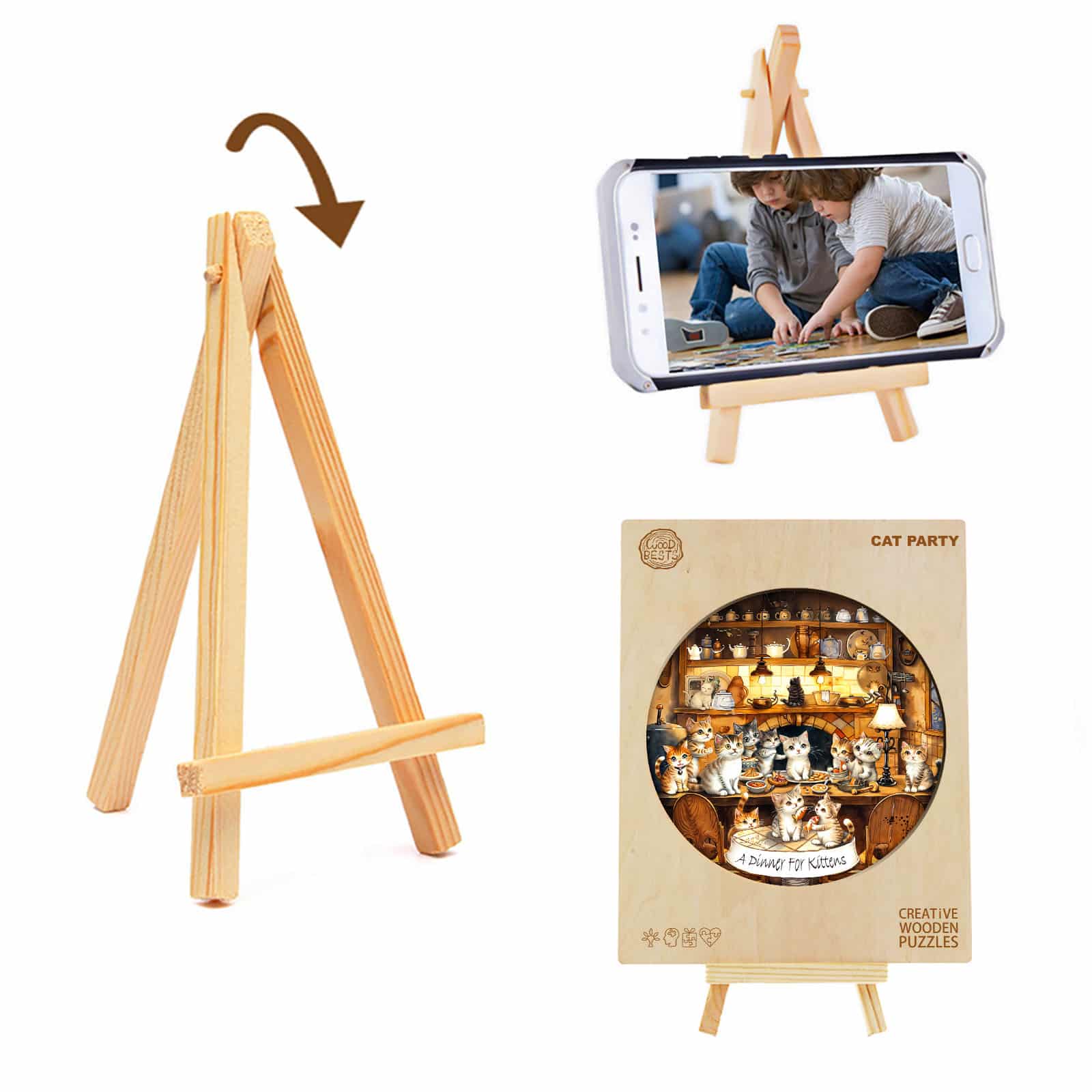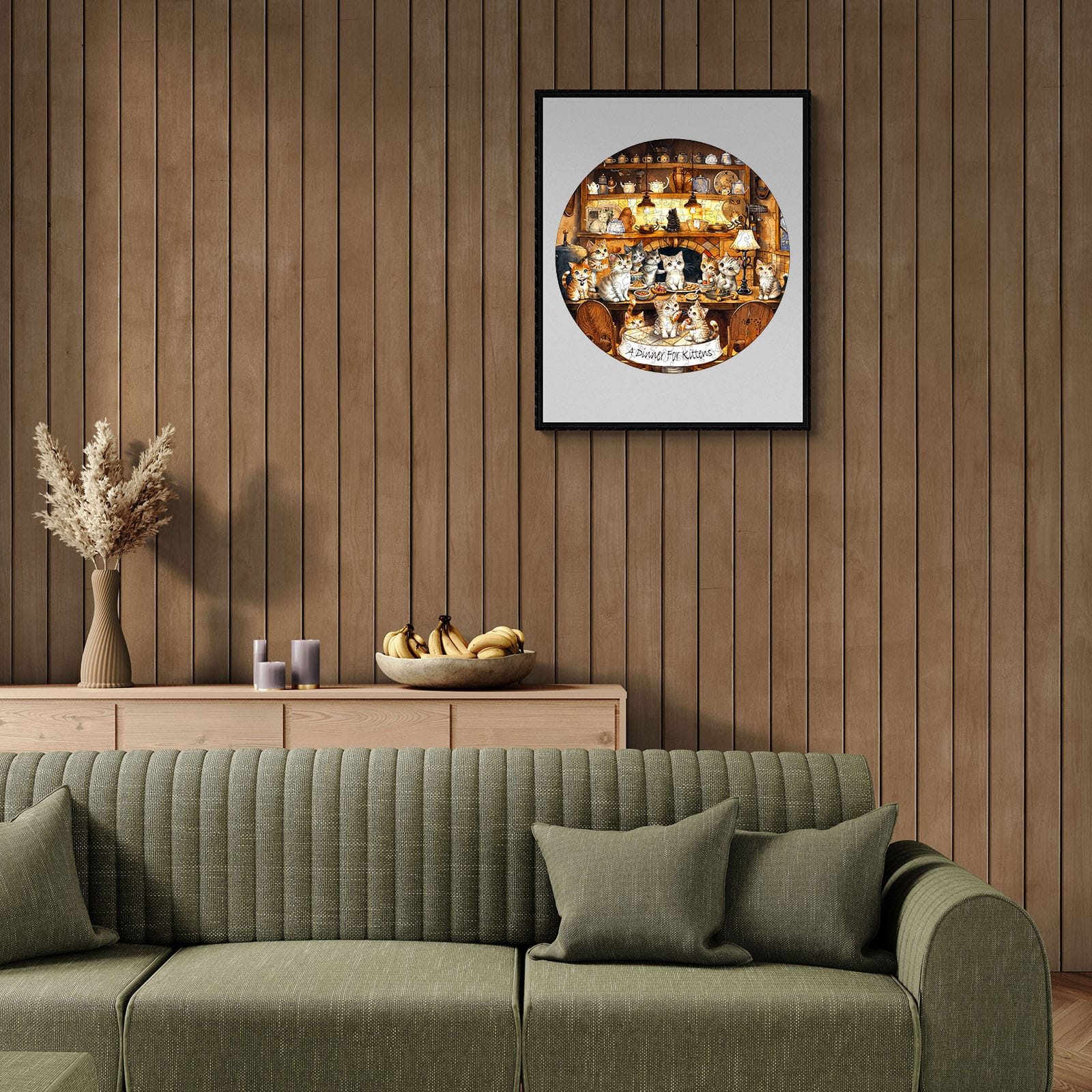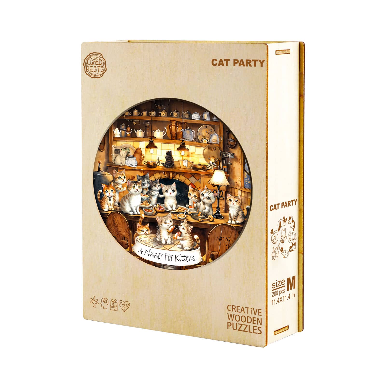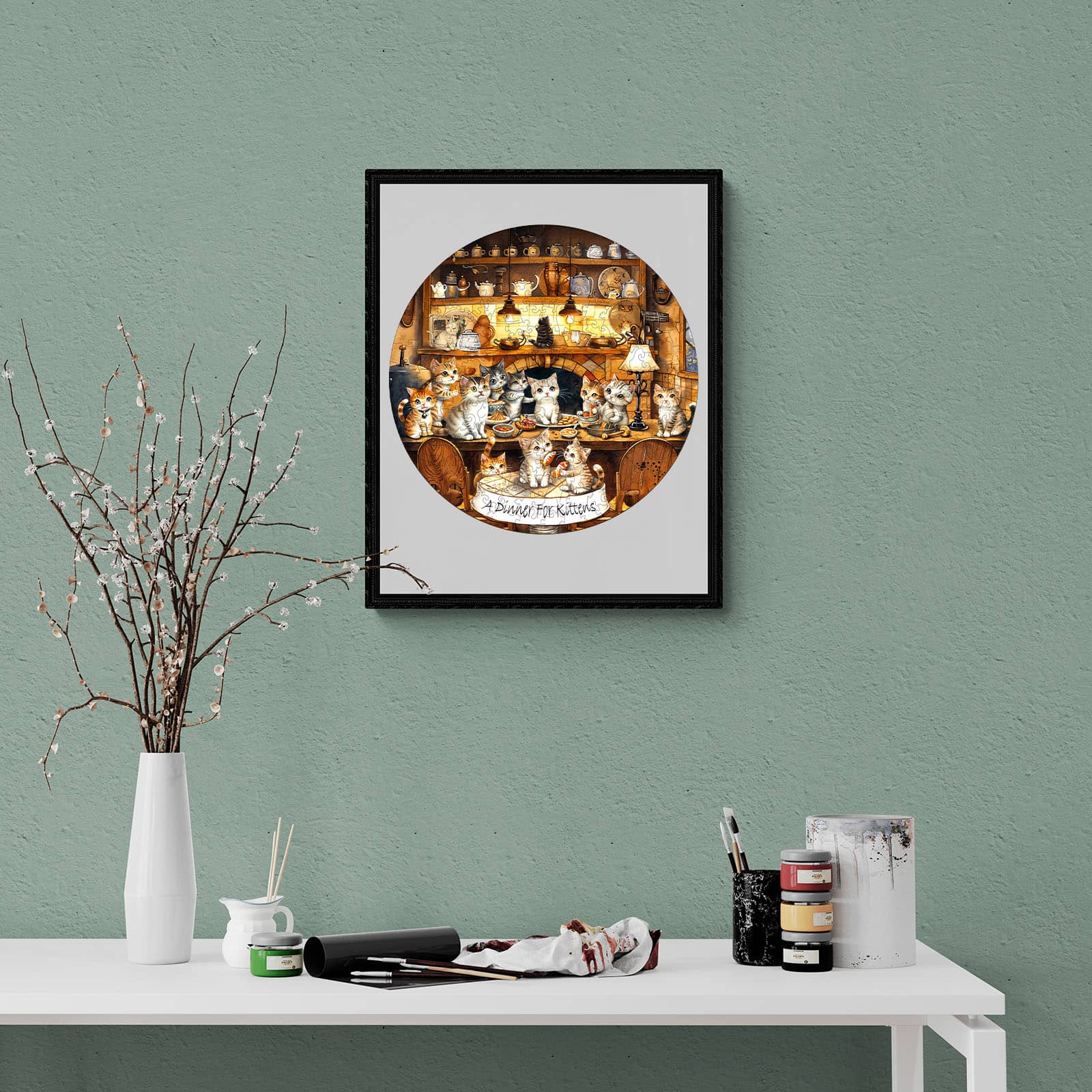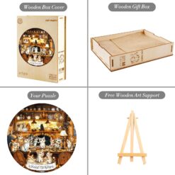 This premium wooden jigsaw puzzle features a delightful circular design titled “A Dinner for Kittens.” It portrays an enchanting scene of adorable kittens gathered in a cozy, vintage kitchen, enjoying a feast of treats. Made from durable, high-quality wood, this puzzle is a charming and engaging activity for cat lovers and puzzle enthusiasts alike, offering hours of entertainment and a beautiful keepsake.