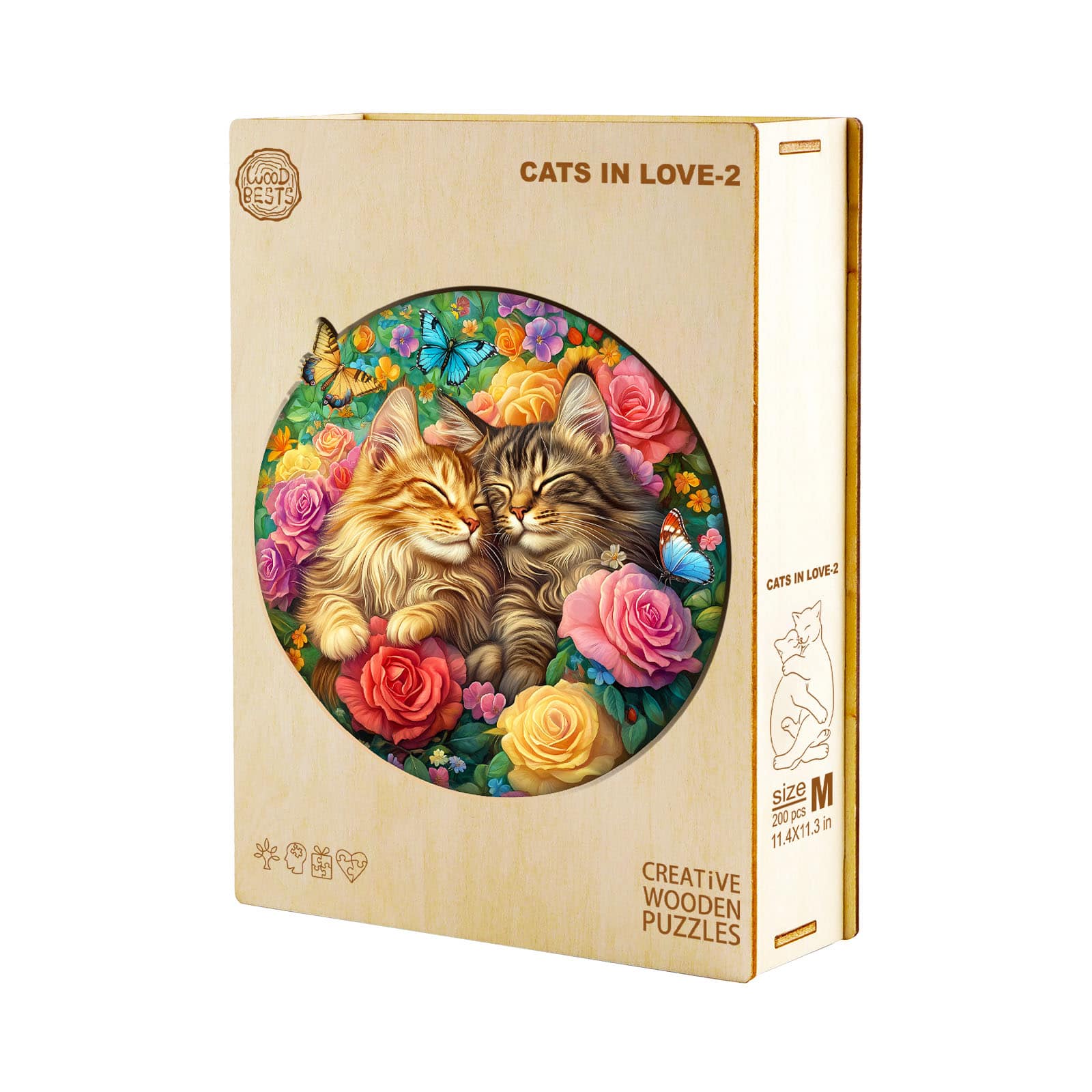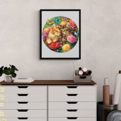 Delight in the charm of this premium wooden jigsaw puzzle featuring two cozy cats nestled among vibrant roses and fluttering butterflies. This intricately crafted puzzle offers a relaxing and rewarding experience, perfect for cat lovers and puzzle enthusiasts alike. A stunning decorative piece and a thoughtful gift!