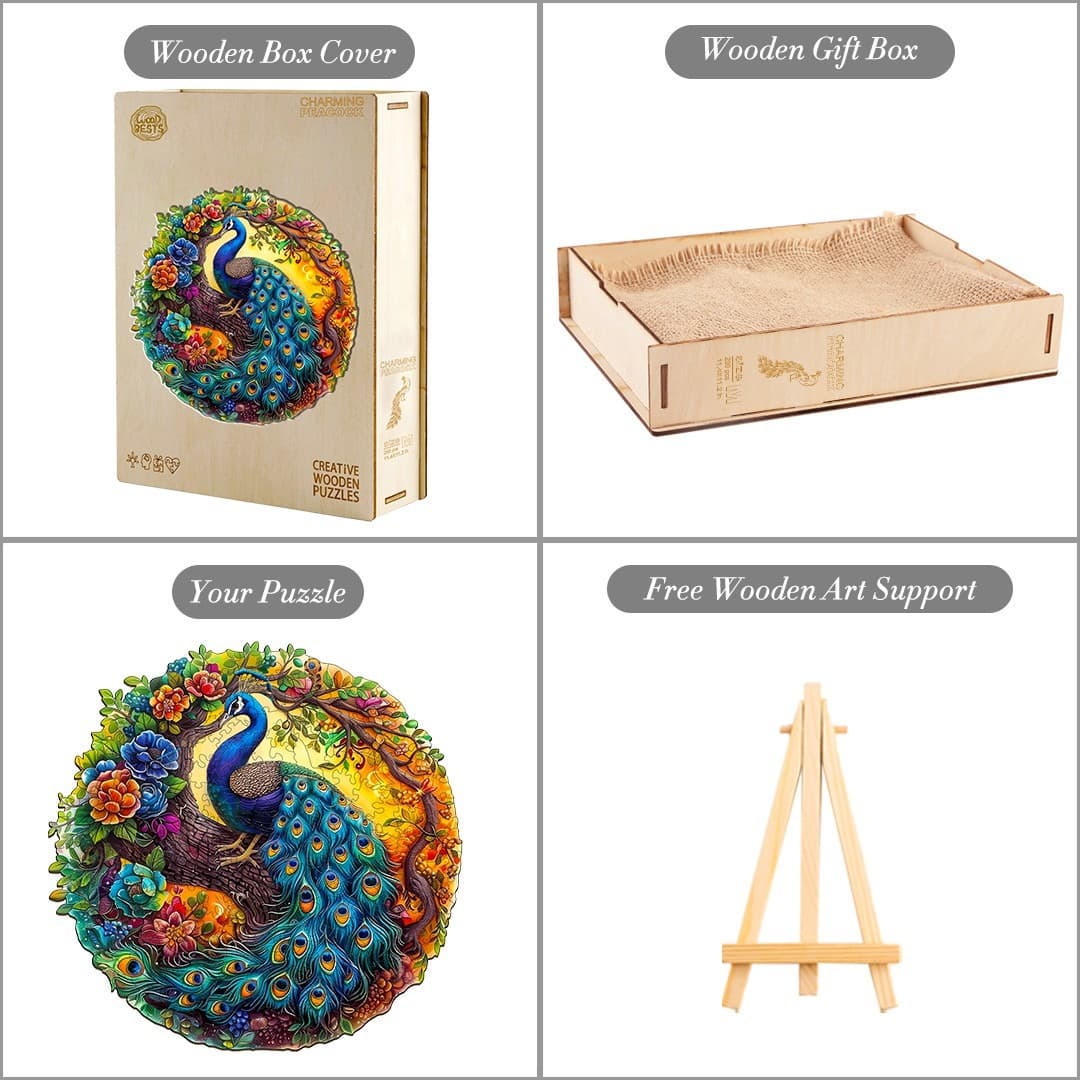 Wooden Jigsaw Puzzle-Charming Peacock 2