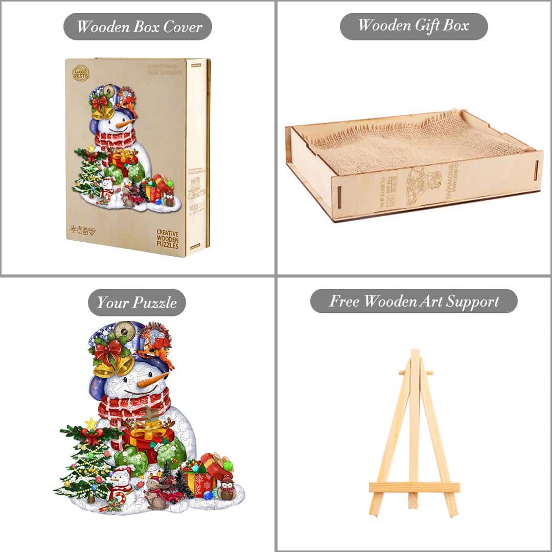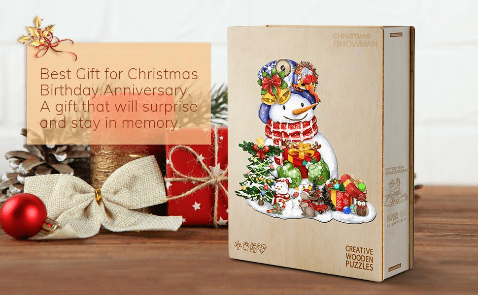 The Christmas Snowman, a cherished symbol of the holiday season, is a jolly and whimsical character. With its round, snow-covered body, carrot-shaped nose, and coal eyes, adorned with a top hat, scarf, and twig arms, it adds a touch of festivity to any winter landscape. It holds a special place in our hearts, reminding us of the joy and wonder that comes with this magical time of year. Wish this Snowman Wooden Puzzle could always bring happiness to your life, instead of only this Christmas
