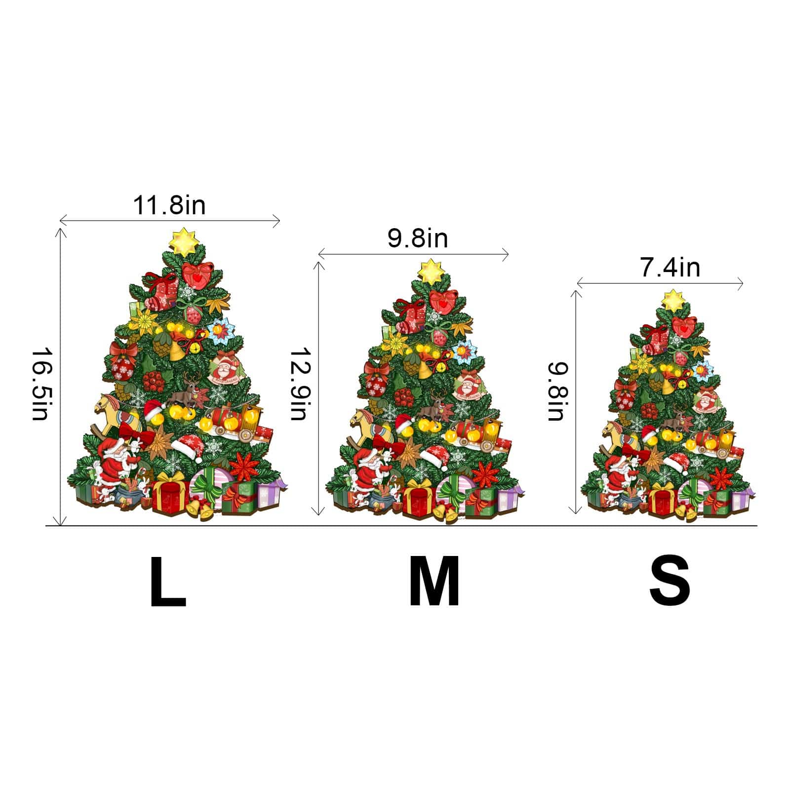 I purchased the size large Christmas Tree. It’s a beautiful puzzle and fairly easy, but not too easy. Took me a couple hours by myself to complete.
