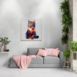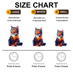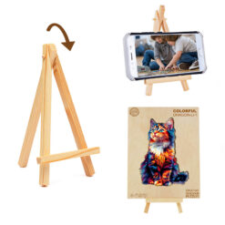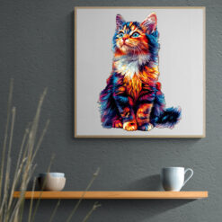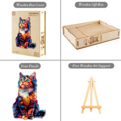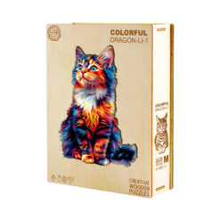 This captivating Kaayee wooden puzzle features a beautiful Dragon-Li cat, rendered in a striking, vibrant artistic style. The intricate design showcases the feline’s fur in a stunning array of rich, warm colors like fiery oranges and reds, blending into cool blues and purples, all highlighted by its piercing blue eyes. Each unique wooden piece contributes to the overall dynamic and textured look, making this a truly engaging and satisfying puzzle to assemble. Perfect for cat lovers, especially those fond of the elegant Dragon-Li breed, and puzzle enthusiasts seeking a challenge that culminates in a unique piece of art.