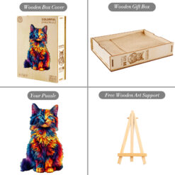 Immerse yourself in the vibrant world of Kaayee wooden puzzles with this magnificent depiction of a Dragon-Li cat. This exceptional puzzle showcases the beloved breed with an explosion of color, where warm oranges and yellows on one side seamlessly transition into cool blues and purples on the other, creating a striking visual duality. The intricate cut of each wooden piece highlights the detailed texture of the cat’s fur and its captivating blue eyes. Assembling this unique puzzle is not just a challenge but an artistic journey, perfect for both avid puzzlers and admirers of the Dragon-Li’s distinct beauty.