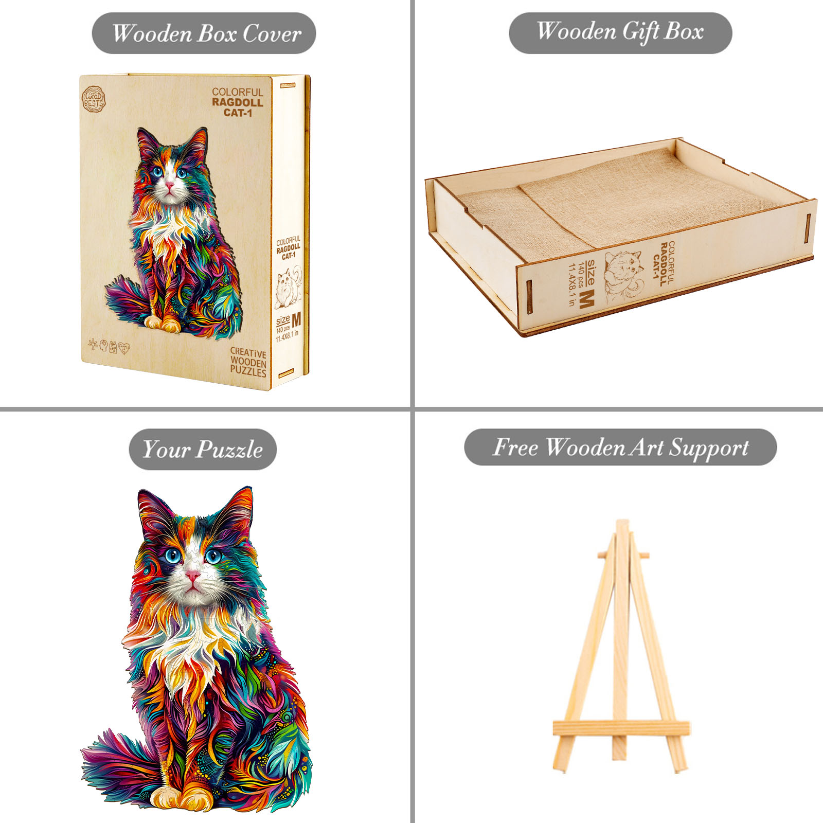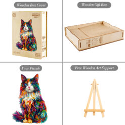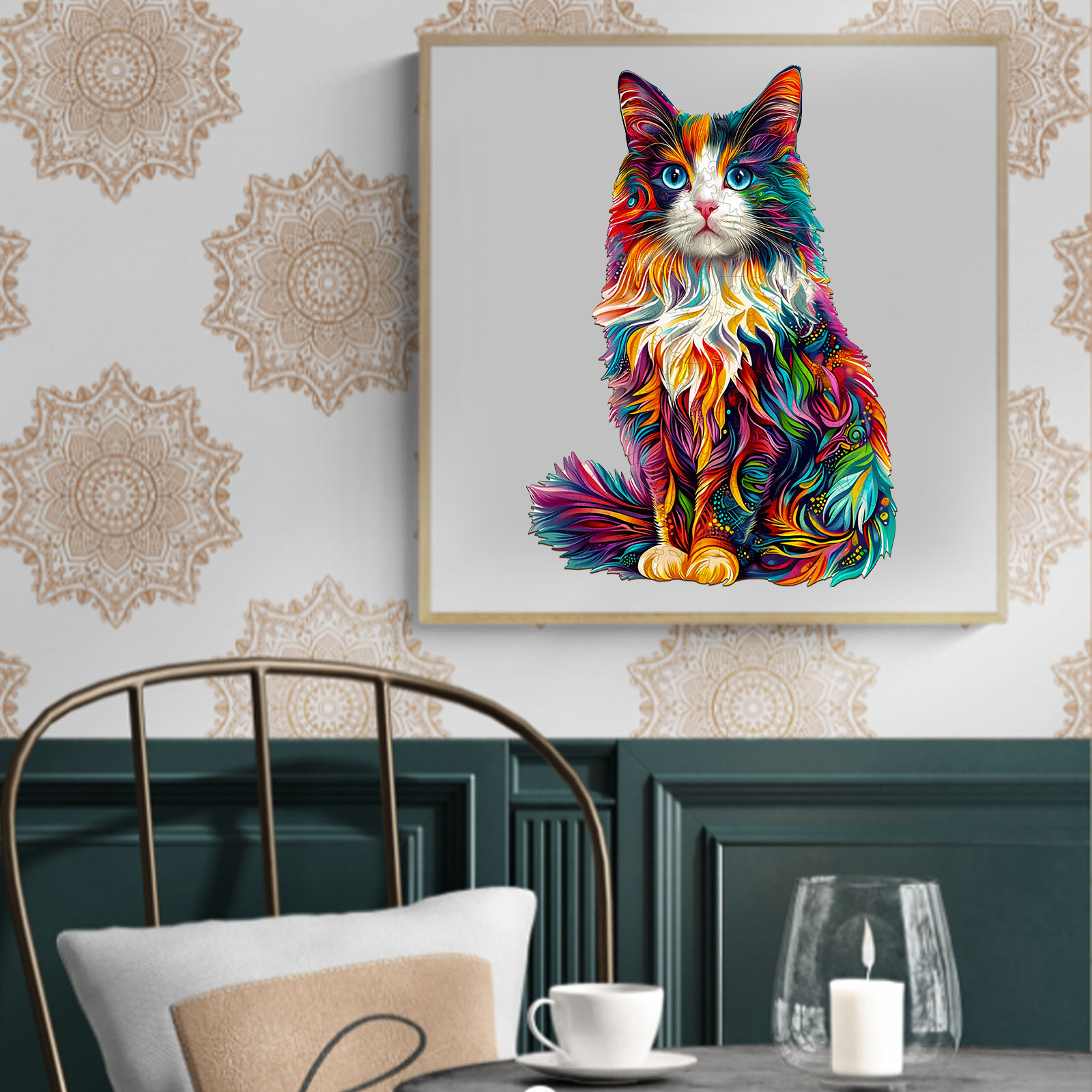 Unleash a burst of creativity with this vibrant Kaayee Wooden Puzzle, showcasing a majestic cat brought to life through a dazzling swirl of rainbow colors. Crafted from high-quality, eco-friendly wood and precisely laser-cut, each piece fits together seamlessly to form a striking feline masterpiece. The intricate details in the fur, paired with the cat’s piercing blue eyes, make this puzzle as mesmerizing to look at as it is to build. Perfect for cat lovers, art enthusiasts, and anyone who enjoys a bold, imaginative challenge, this puzzle doubles as a captivating display piece once completed.