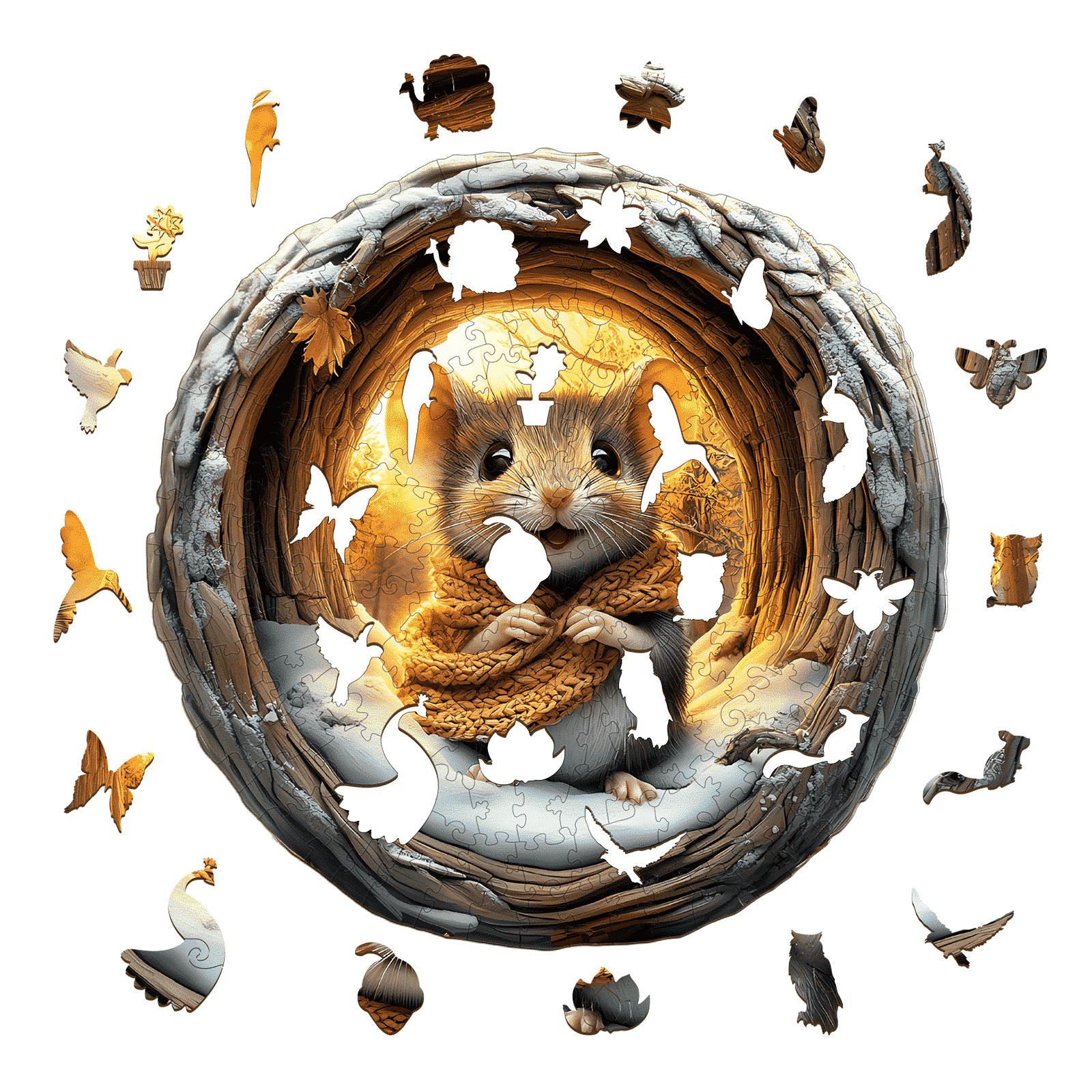 Wooden Jigsaw Puzzle - cute mouse with scarf