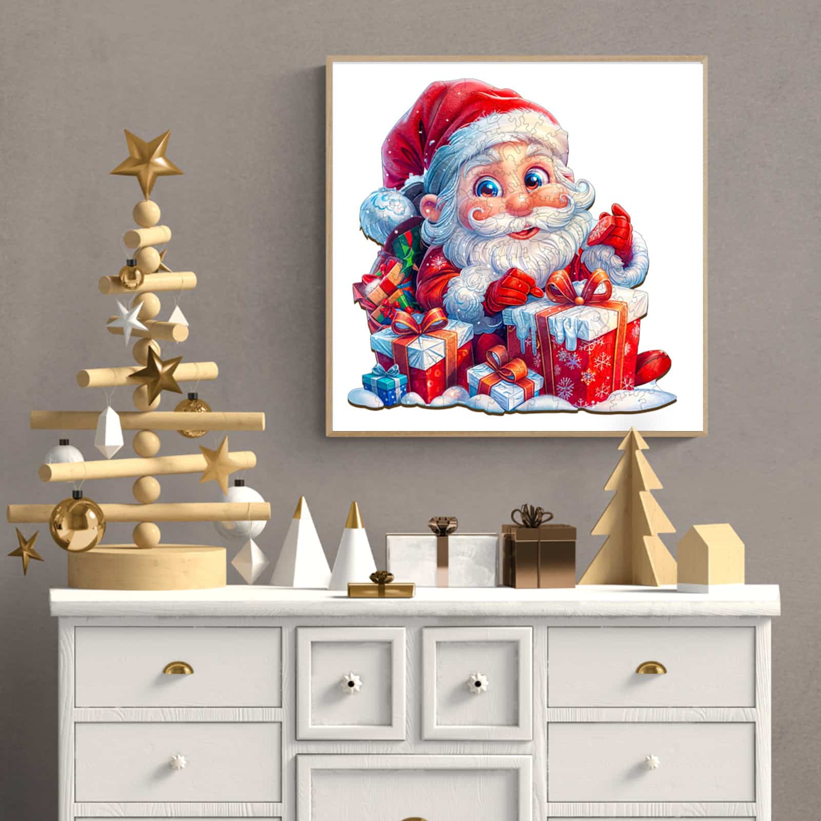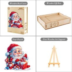 This charming wooden puzzle features a bright-eyed, cheerful Santa Claus surrounded by beautifully wrapped presents, ready to bring holiday joy. With its vibrant colors and playful details, this puzzle captures the magic of Christmas in every piece. Perfect for festive family gatherings or as a gift, the puzzle provides hours of fun while showcasing Santa’s jolly spirit. Crafted from high-quality wood, it’s both durable and eco-friendly. Bring the warmth of the season into your home with this delightful addition to your Christmas puzzle collection!