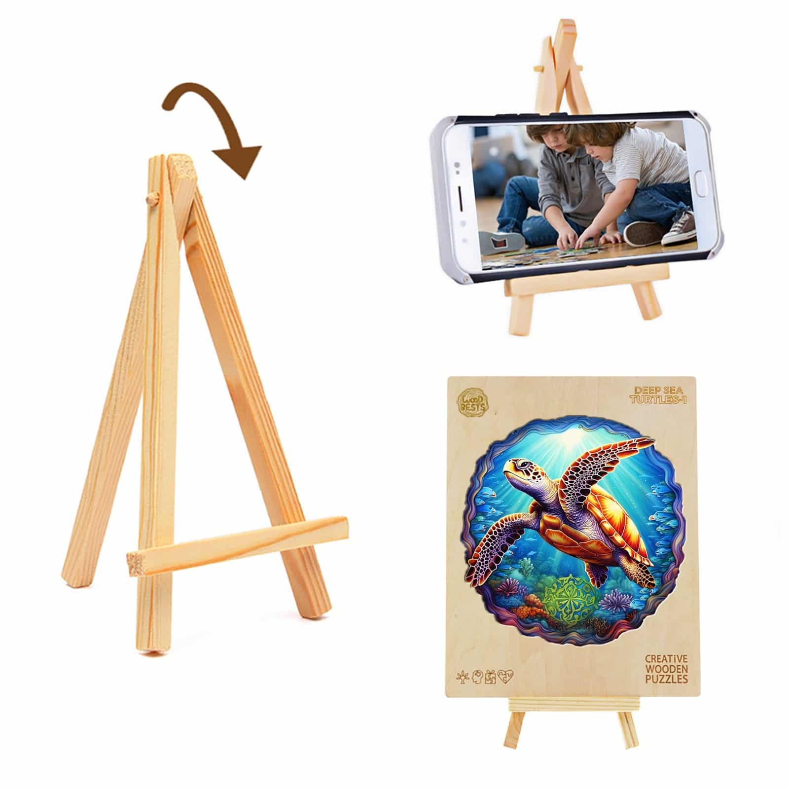 It was a nice puzzle made out if wood. Hard to put together. All the pieces are different shapes. It came in a cute wooden box, wrapped in a clothe with a stand.