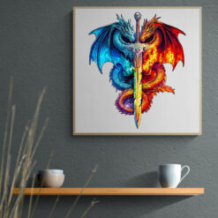 Enter a realm of fire and ice with the Dual Dragon Sword Wooden Puzzle. This striking design features two powerful dragons—one ablaze in fiery reds and oranges, the other shimmering in icy blues—coiled around a mystical sword glowing with radiant colors. Crafted from high-quality wood and laser-cut for precision, each puzzle piece reveals part of an epic fantasy scene filled with contrast, energy, and detail. A captivating challenge for puzzle enthusiasts and a bold display piece for lovers of mythology, dragons, and heroic tales.
