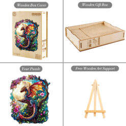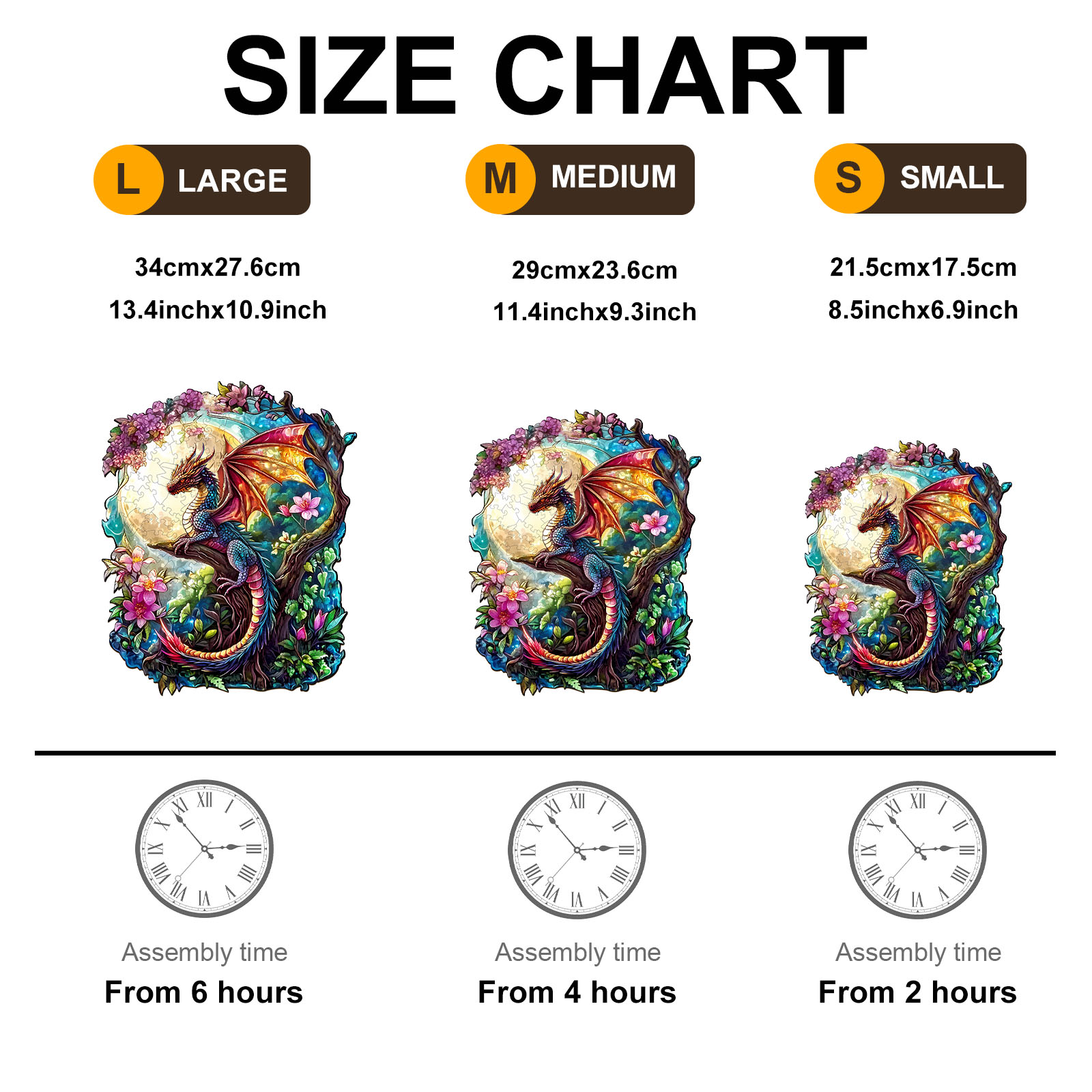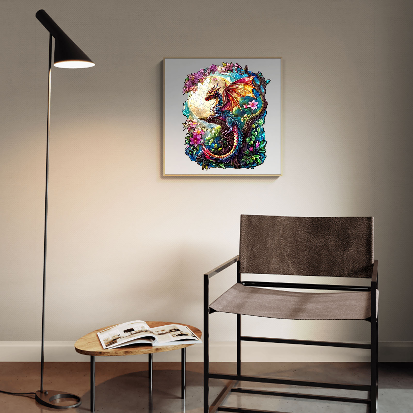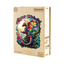 Step into a world of fantasy with our Moonlit Dragon Wooden Puzzle. Featuring a majestic dragon perched gracefully on a tree branch beneath a glowing full moon, this puzzle bursts with color and enchanting detail. Surrounded by blooming flowers and lush forest foliage, the artwork is printed in stunning clarity on premium wood. Each piece is uniquely laser-cut for a satisfying fit and an engaging challenge. Perfect as a gift for fantasy lovers, dragon enthusiasts, or anyone seeking a magical puzzle experience and a beautiful display piece.