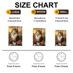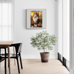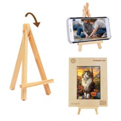 This Elegant Cat wooden puzzle features a regal feline adorned with a golden crown and a jeweled pendant, seated gracefully amidst a vibrant field of blooming flowers. The puzzle showcases intricate details, from the cat’s soft fur to the rich colors of the sunset sky in the background, creating a mesmerizing and whimsical scene. With beautifully crafted wooden pieces, this puzzle is both a work of art and a challenging, enjoyable activity for puzzle enthusiasts
