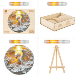 Unleash the power and elegance of fantasy with Kaayee’s White Dragon Wooden Puzzle. This breathtaking circular design features a fierce white dragon coiled among blooming flowers, glowing under a radiant golden sun. Meticulously laser-cut from high-quality wood, each puzzle piece fits seamlessly into a mesmerizing scene of strength and serenity. With its intricate textures, dynamic composition, and mythical theme, this puzzle offers both a captivating challenge and a stunning work of art. Perfect for fantasy lovers, collectors, and puzzle enthusiasts alike.