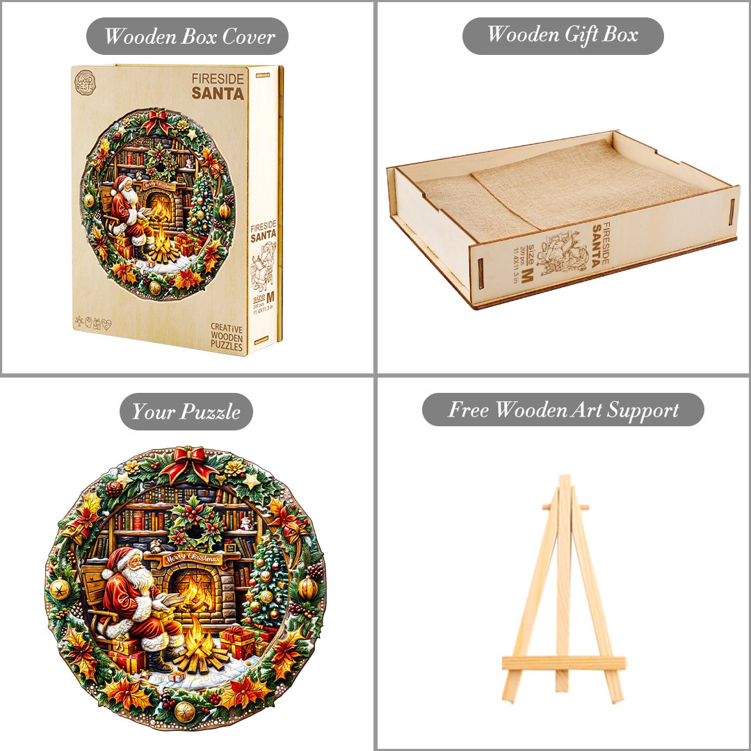 Gather around the warmth of the holiday season with the Fireside Santa wooden puzzle! This enchanting design features Santa Claus relaxing by a cozy fireplace, surrounded by beautifully decorated Christmas greenery, a festive tree, and wrapped presents. With intricate details and vibrant colors, this puzzle captures the heartwarming essence of Christmas Eve. Made from high-quality, eco-friendly wood, it offers hours of relaxing and enjoyable assembly. Perfect for adding a festive touch to your décor or as a holiday gift, the ‘Fireside Santa’ puzzle brings the magic of Christmas into every piece!