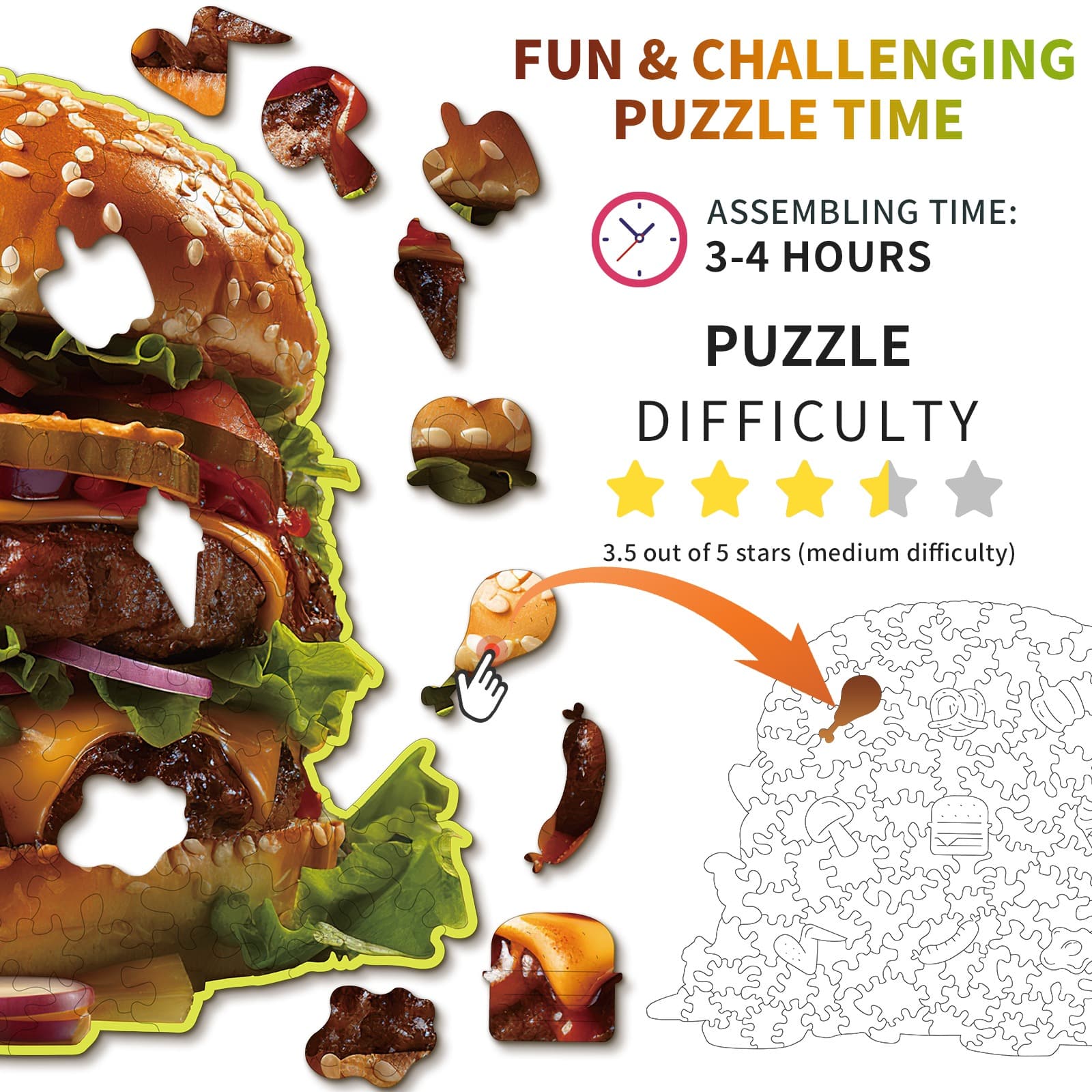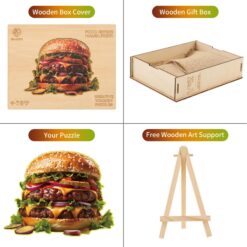 Indulge in the joy of life with Food Series Jigsaw Puzzles. Simple and daily delicious food not only fills the stomach but also soothes the heart. Featuring 7 common foods in daily life, with its bright colors, and about 110pcs format, this series is perfect for all ages and skill levels. Would be a nice choice for parties or family activities. Always believe there’s nothing more satisfying than taking a bite of a double-layered cheeseburger when you’re hungry