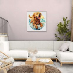 Golden Retriever is an embodiment of joy, loyalty, and gentle nature. Known for their stunning golden fur, these dogs exude an irresistible charm that captures the hearts of many. Their intelligence, friendly demeanor, and eagerness to please make them excellent companions, both as family pets and working dogs. It’s a wonderful evening, the sunset colored the sky, this big guy is running happily against the sea breeze and riding the waves. Happiness is that simple. Wish this cute Golden Retriever Puzzle could always bring happiness and good luck to your life