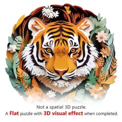 Unleash the majesty of the wild with this premium wooden jigsaw puzzle, featuring a striking 3D tiger design that captures the animal’s fierce beauty and commanding presence. Surrounded by lush, vibrant foliage and delicately crafted flowers, the puzzle’s intricate details and layered construction create a stunning visual masterpiece.Each piece is precisely cut from durable, eco-friendly wood, ensuring a smooth, high-quality fit for an enjoyable and long-lasting puzzling experience. The bold colors and 3D effect bring the tiger’s piercing gaze and textured fur to life, making the completed puzzle not just a pastime but a striking piece of art.Ideal for animal lovers, puzzle enthusiasts, and anyone looking for a unique decorative centerpiece, this puzzle is perfect as a gift or for personal enjoyment.