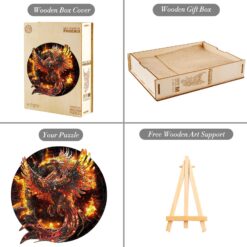 Ignite your imagination with this captivating wooden jigsaw puzzle showcasing a magnificent phoenix surrounded by blazing flames. Crafted from premium wood, each intricately cut piece fits seamlessly, creating an immersive experience for puzzlers of all levels. The striking artwork, rich in fiery details and metallic accents, embodies the mythical bird’s rebirth, making this puzzle both an engaging challenge and an impressive display piece. Perfect for enthusiasts of fantasy and mythology, it’s a unique and rewarding way to spend your leisure time.