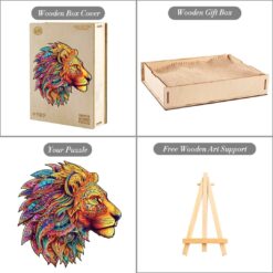 A beautiful puzzle with fine wood pieces. It took a while to finish, but I really enjoyed it. Some of the pieces were hard to separate.