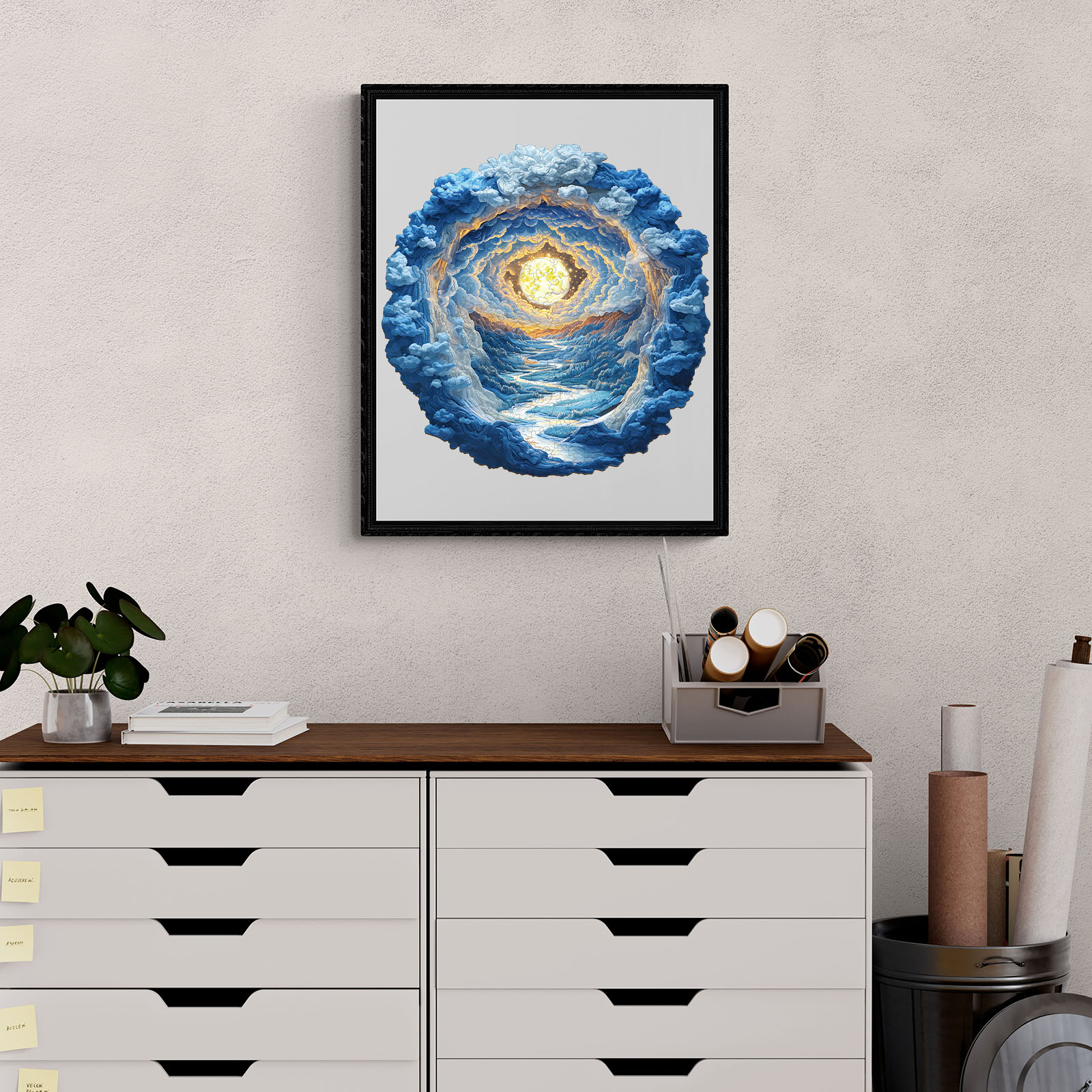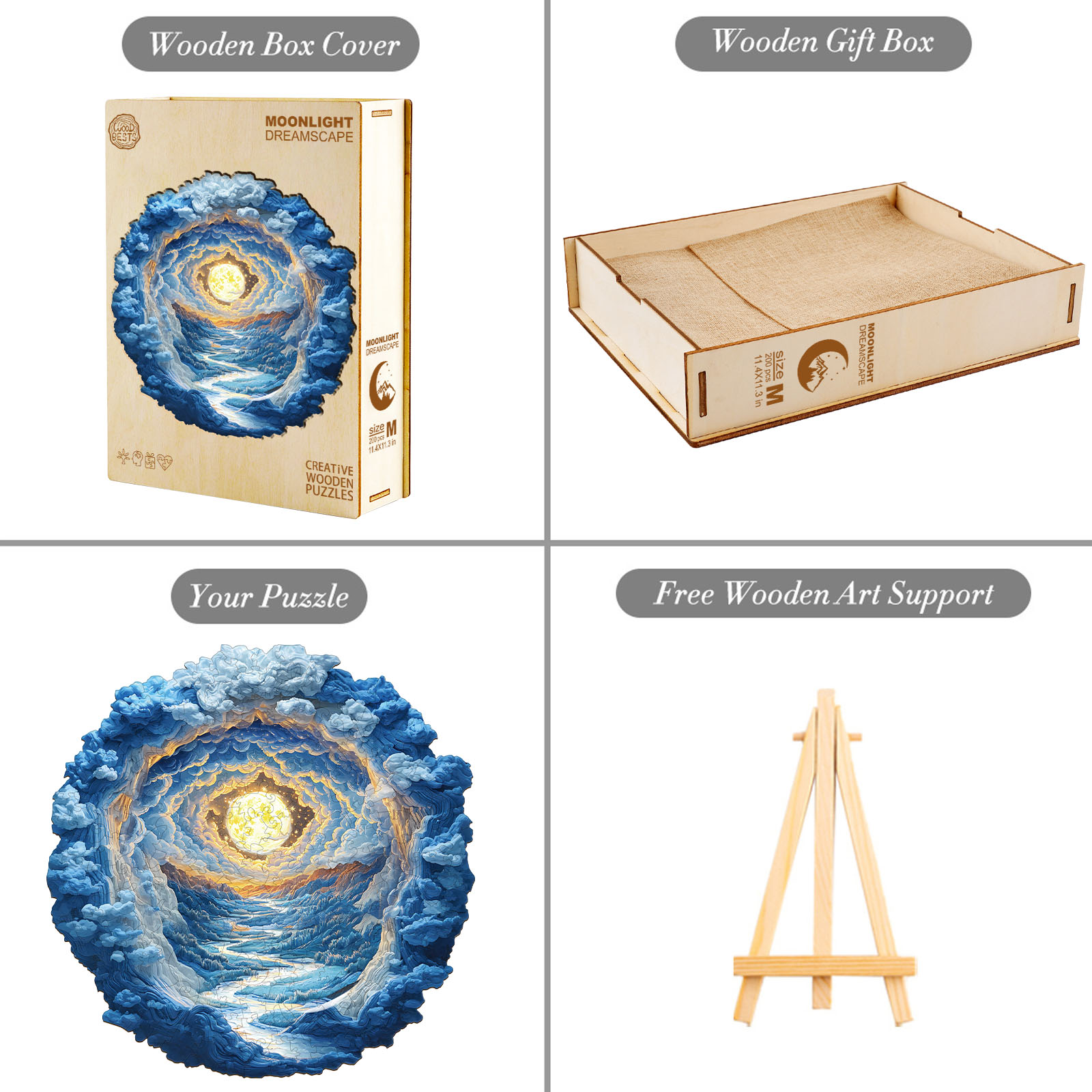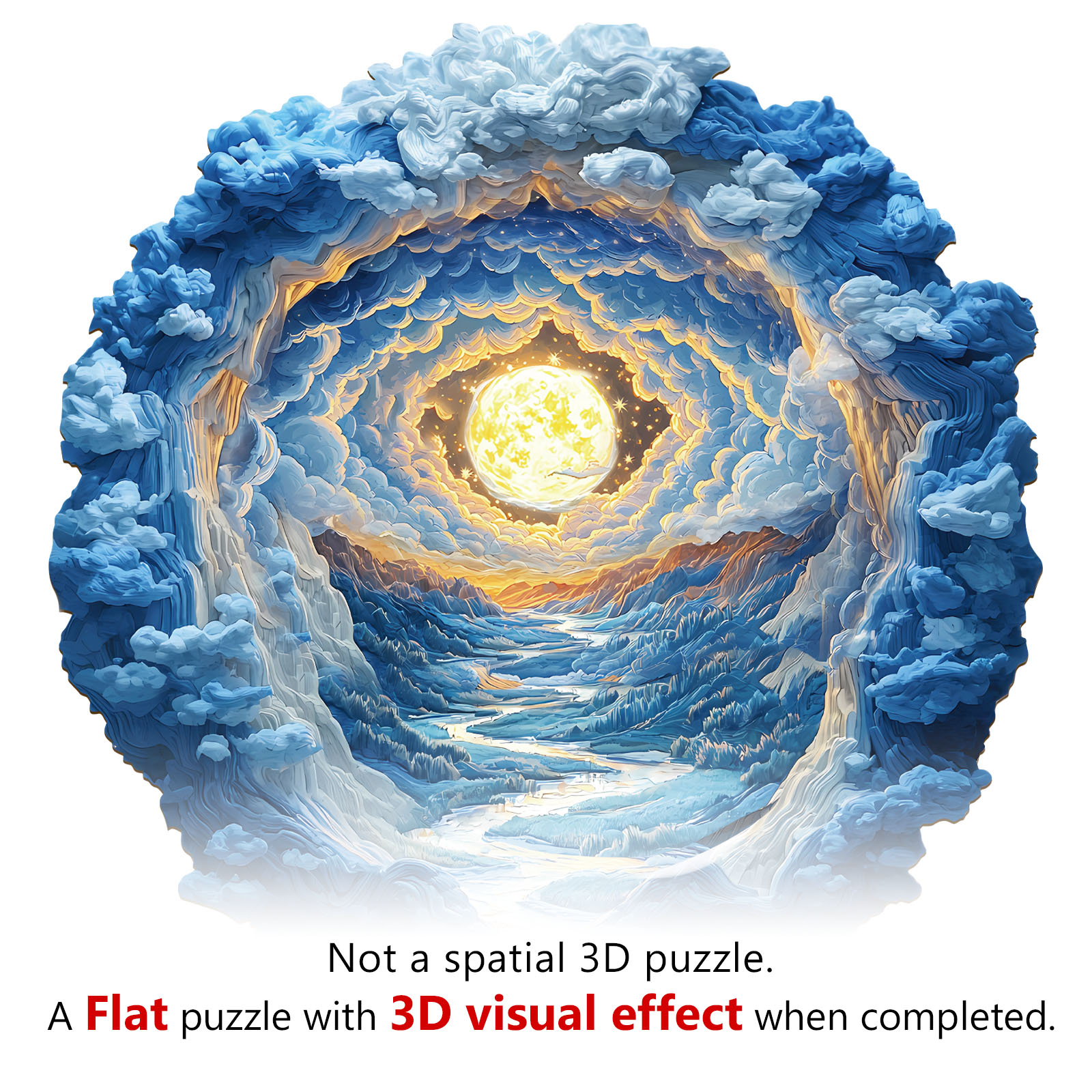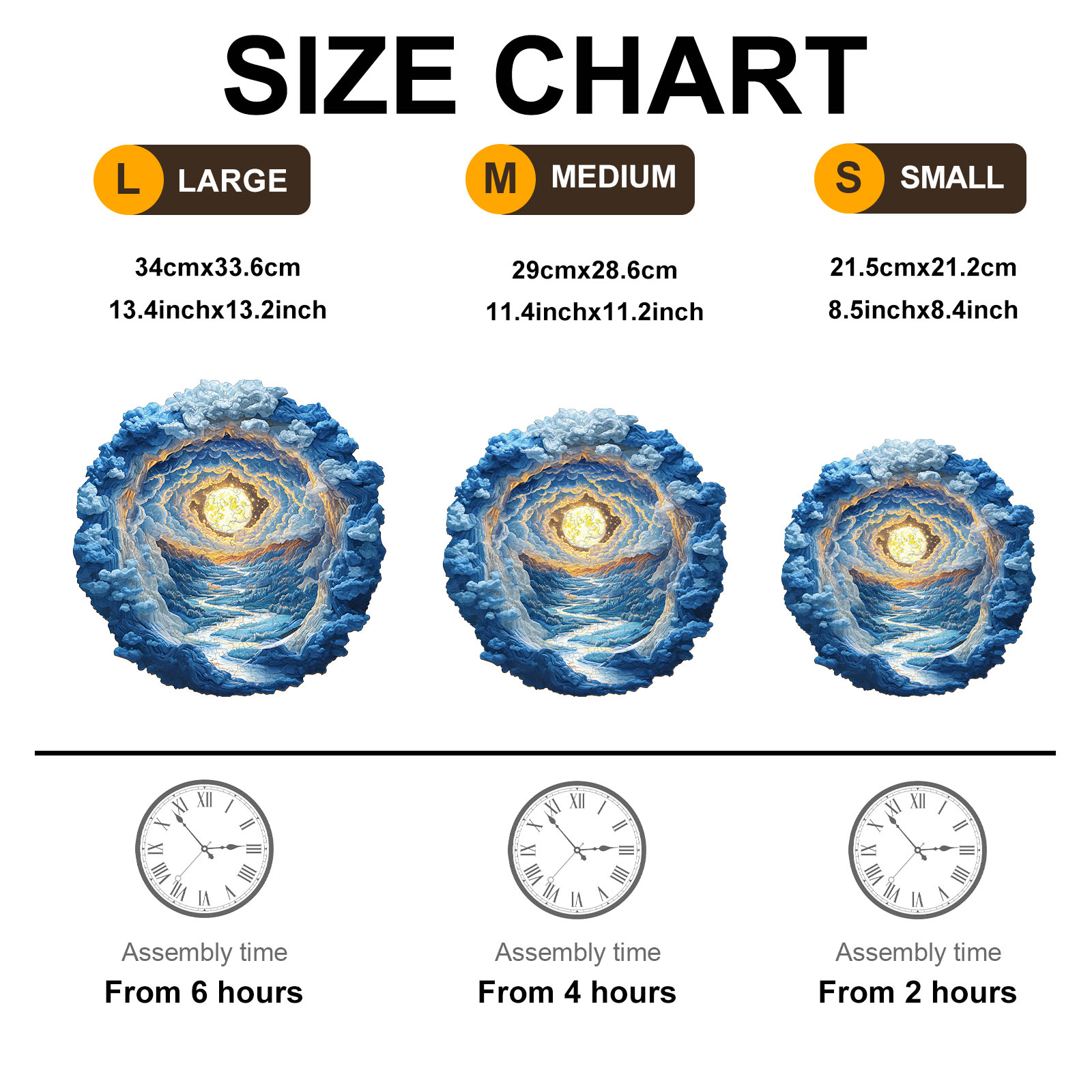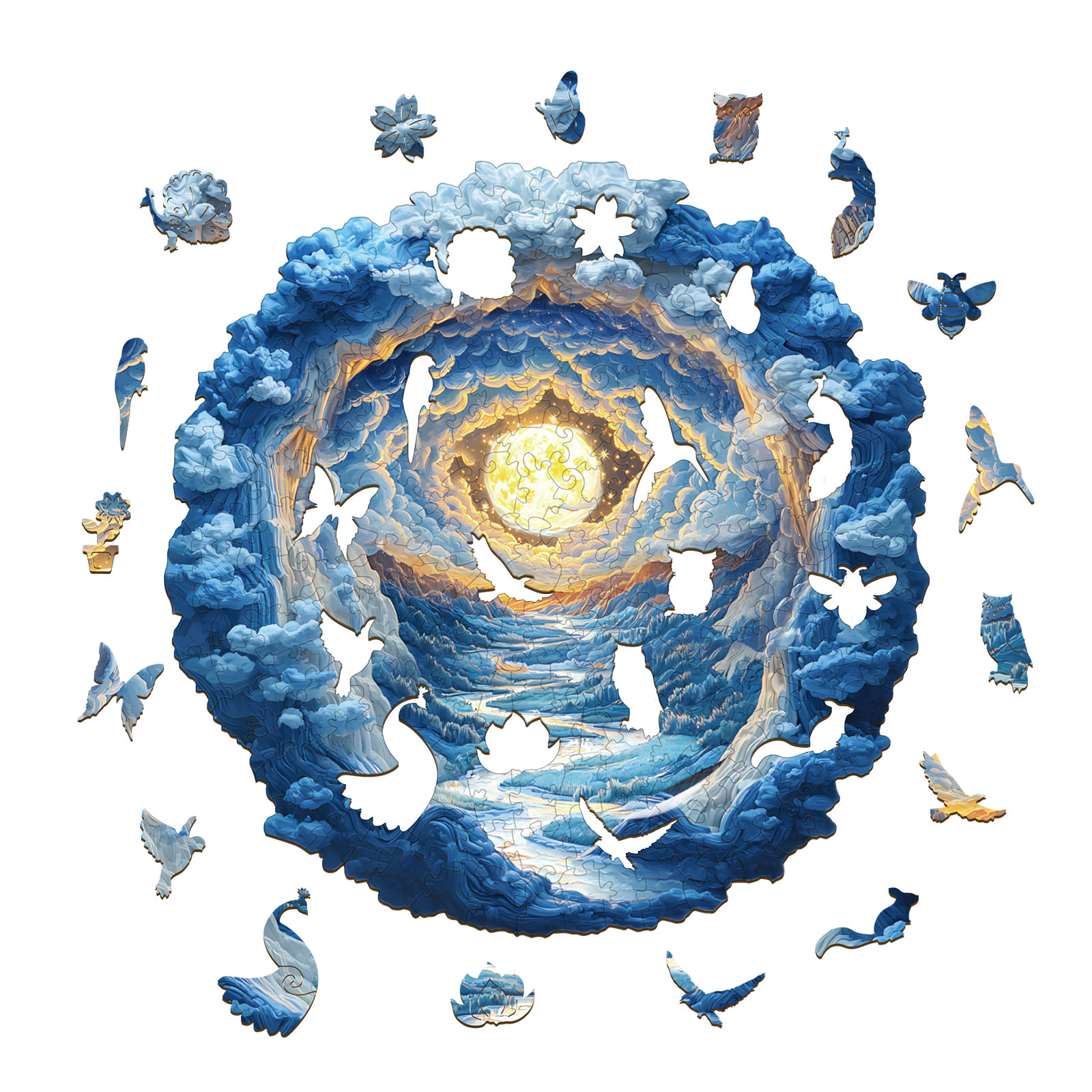 Immerse yourself in a breathtaking journey through clouds and stars with our Celestial Dreamscape wooden puzzle. Crafted with precision, this round masterpiece features a surreal celestial scene—billowing layers of clouds spiraling toward a radiant, dreamlike sun, illuminating a winding river below. Each piece is uniquely shaped and made from premium wood, offering a satisfying tactile experience and a stunning display once completed. Perfect for puzzle lovers, fantasy art enthusiasts, and anyone seeking a magical, meditative escape.