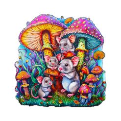 This Mouse Family wooden puzzle showcases an adorable family of mice nestled amidst a vibrant and whimsical forest of colorful mushrooms. The puzzle’s vivid details bring the enchanting scene to life, with the mice’s soft, gray fur and pink ears standing out against the rich, psychedelic hues of the towering mushrooms. Each mushroom is intricately designed with unique colors, patterns, and textures, creating a magical, otherworldly feel. This delightful, nature-inspired puzzle is perfect for puzzle enthusiasts and lovers of charming woodland creatures, offering a fun and immersive experience for all ages