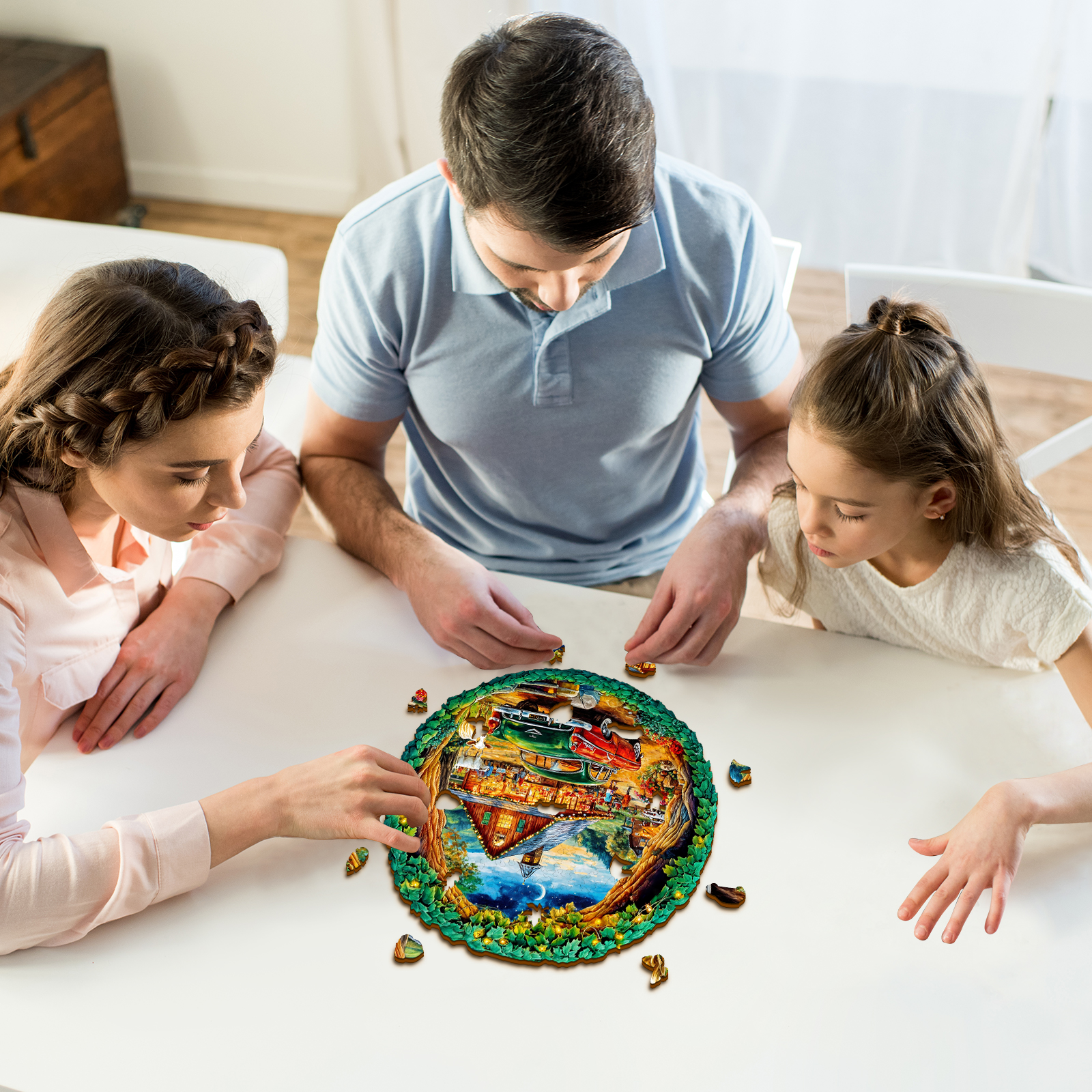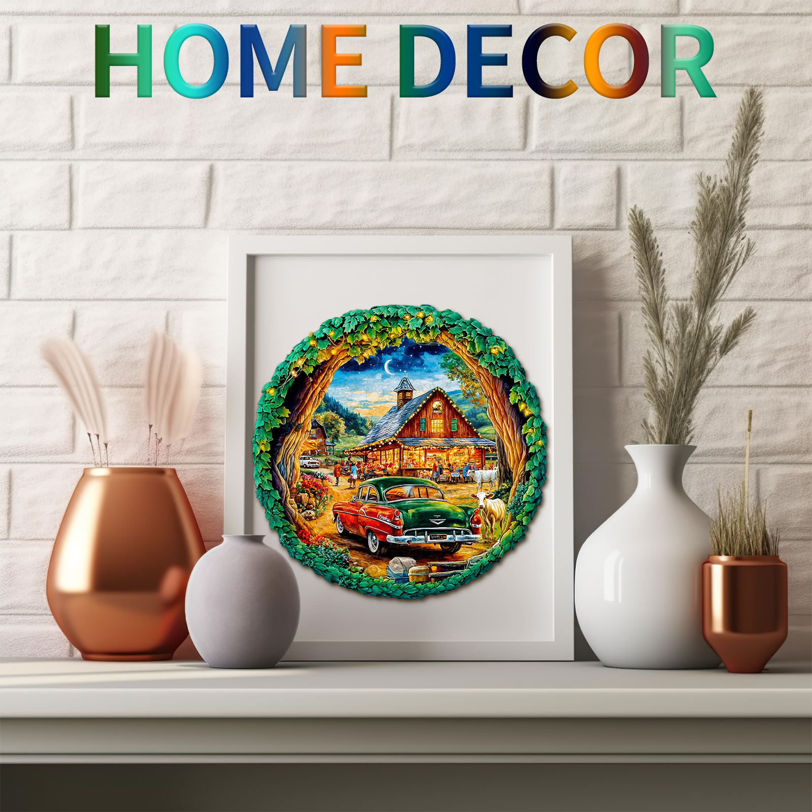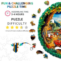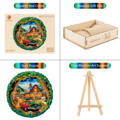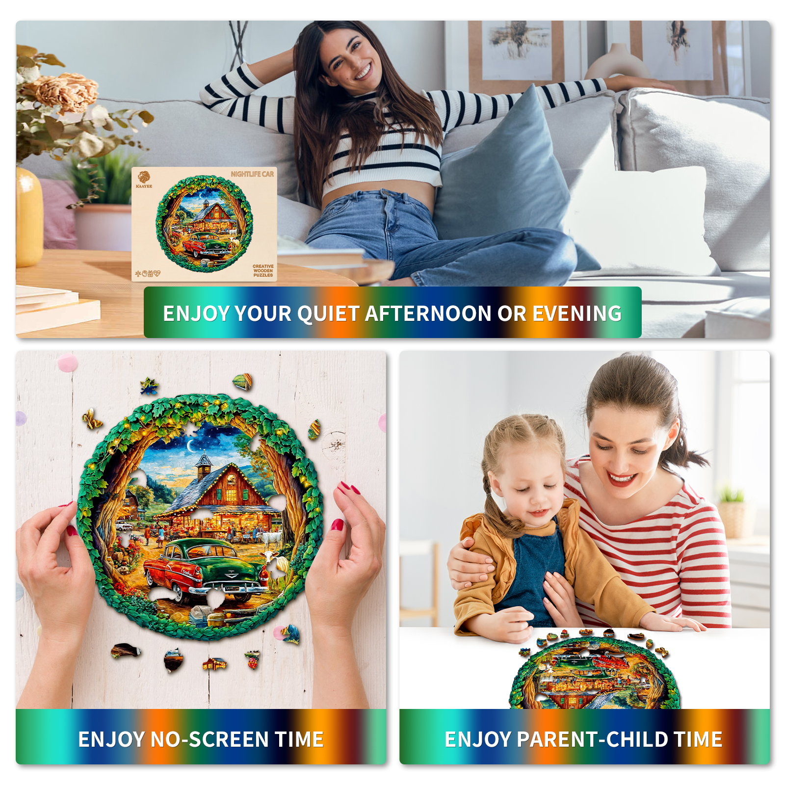 Celebrate the warmth of community and nostalgia with Kaayee’s Country Market Night Wooden Puzzle. This heartwarming circular design captures a lively evening at a rustic countryside store, glowing under string lights and a crescent moon. Classic cars, cheerful townsfolk, curious cows, and blooming flowers come together to create a scene full of charm and detail. Each wooden piece is precisely laser-cut and made from durable, eco-friendly materials—offering a fun challenge and a delightful escape into simpler times. Perfect for lovers of rural life, vintage vibes, and cozy storytelling.