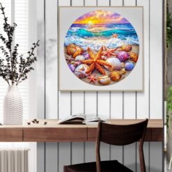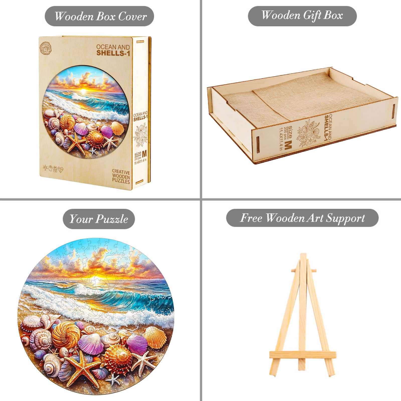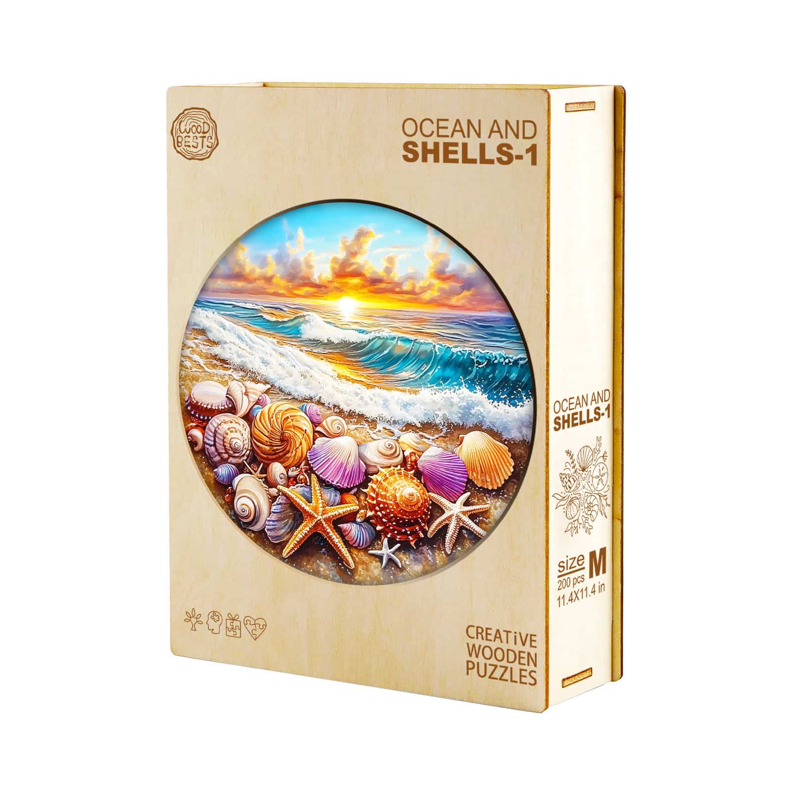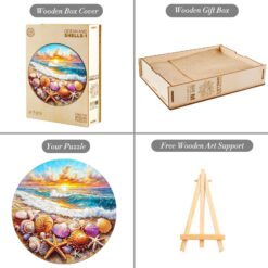 The Ocean and Shells wooden puzzle beautifully captures the tranquility of a beachside paradise. Featuring a vibrant scene of starfish and seashells scattered across the sandy shore, the puzzle brings the ocean’s natural beauty to life. The crystal-clear waves gently roll onto the beach as the sun sets, casting a golden glow over the serene landscape. Each intricately designed piece fits together to form a stunning, detailed depiction of the seaside. Perfect for those who love the ocean and nature, this puzzle offers a calming and visually striking challenge, making it an ideal addition to any collection