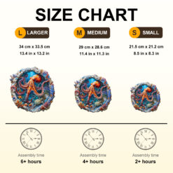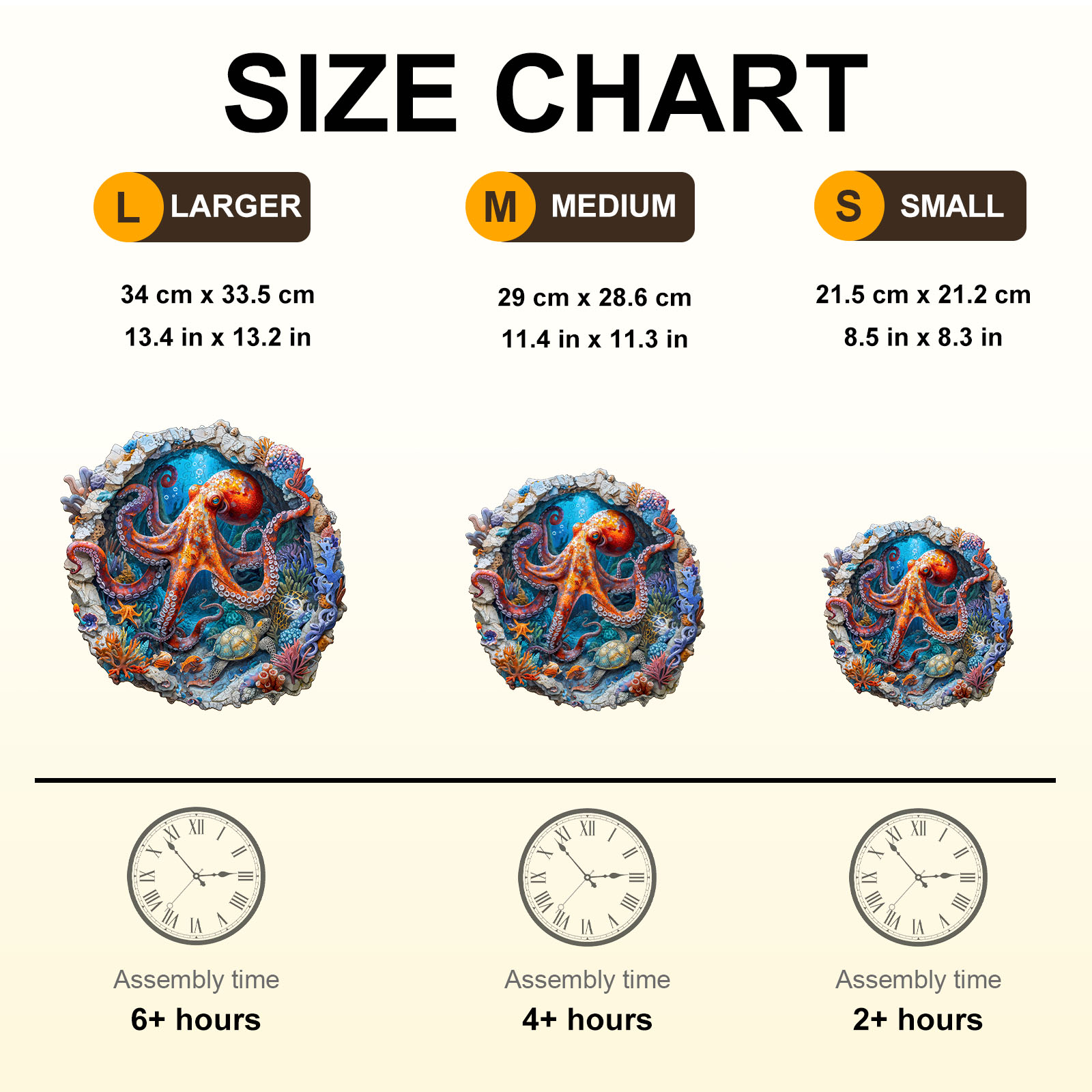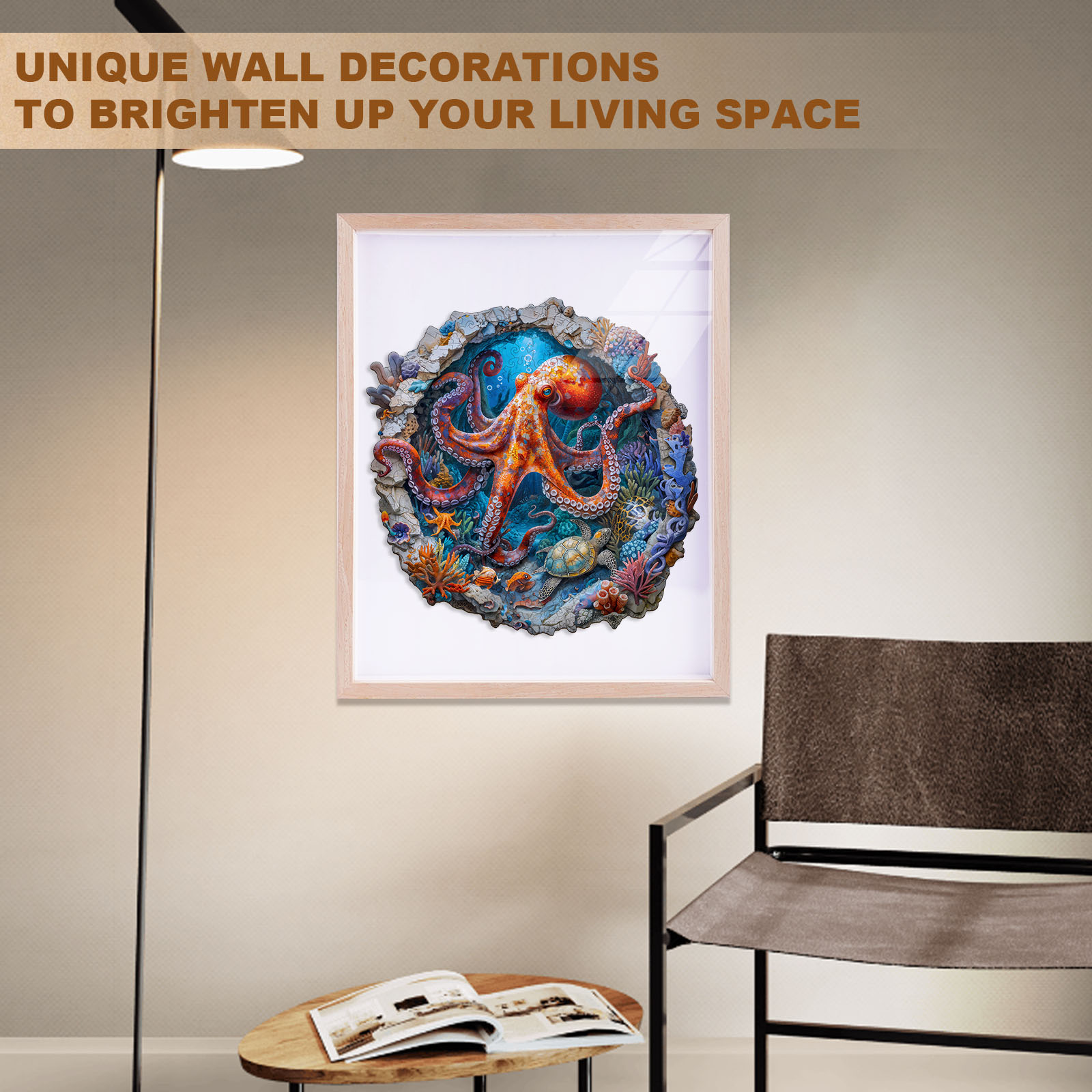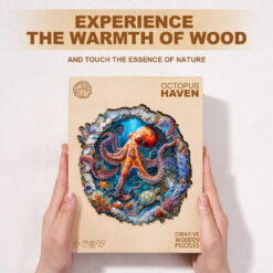 This stunning Kaayee wooden puzzle features a captivating underwater scene, showcasing a vibrant, lifelike octopus as its centerpiece. The highly detailed image depicts the majestic creature surrounded by a rich and colorful coral reef, teeming with diverse marine life. The puzzle’s unique, irregular shape adds to the challenge and aesthetic appeal, making it a beautiful piece of art once completed. Its intricate design and high-quality craftsmanship make it a perfect gift for puzzle enthusiasts and lovers of marine biology alike.