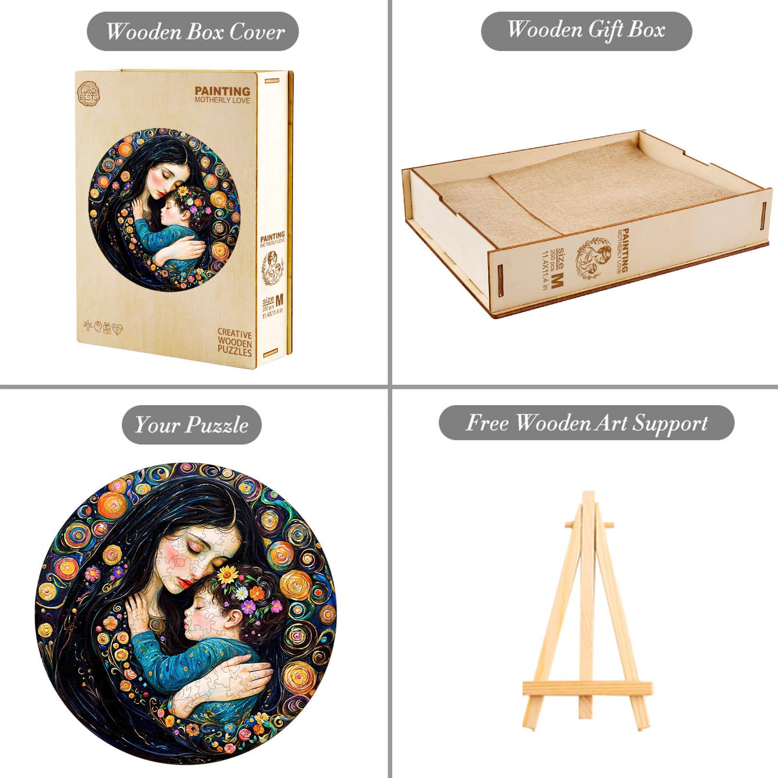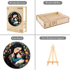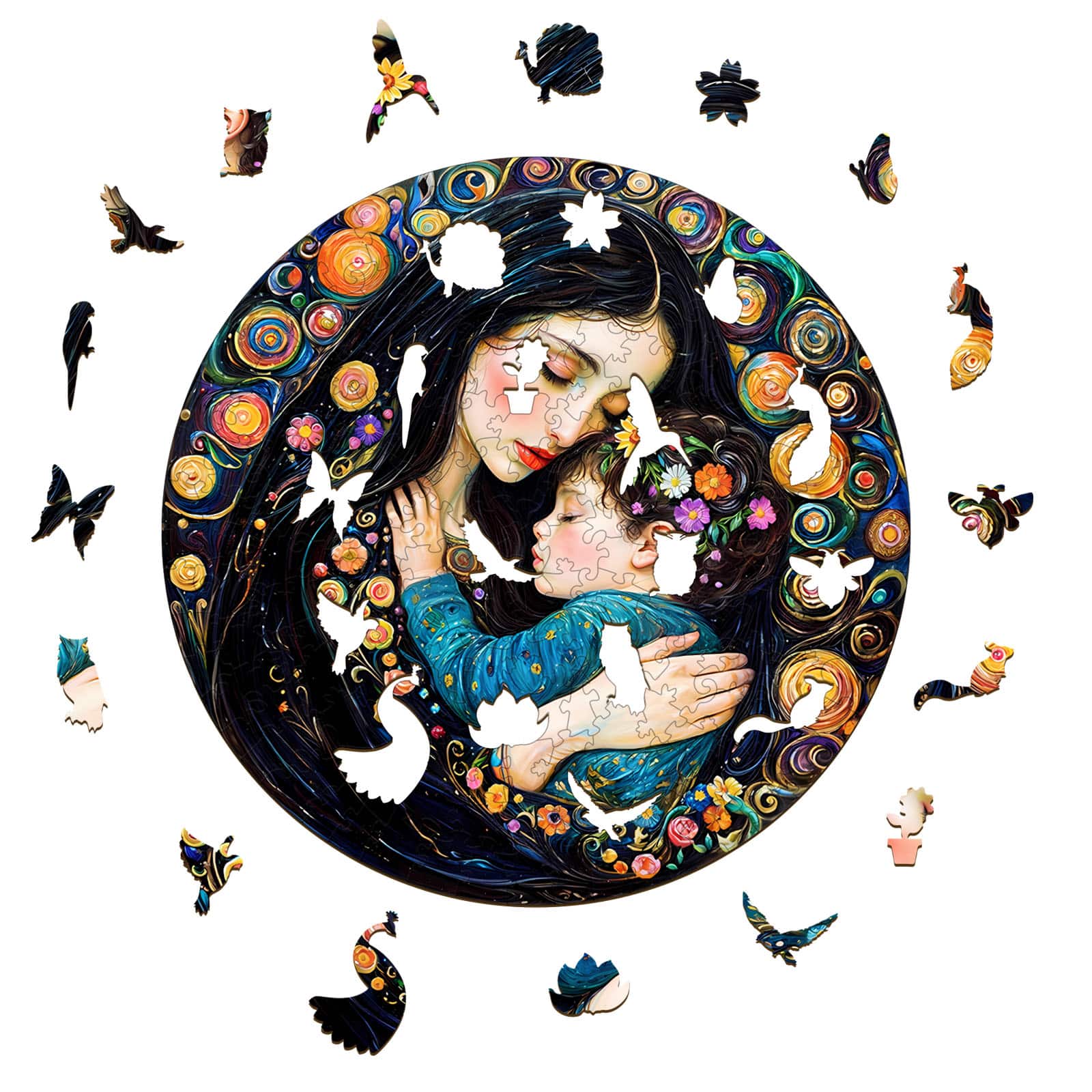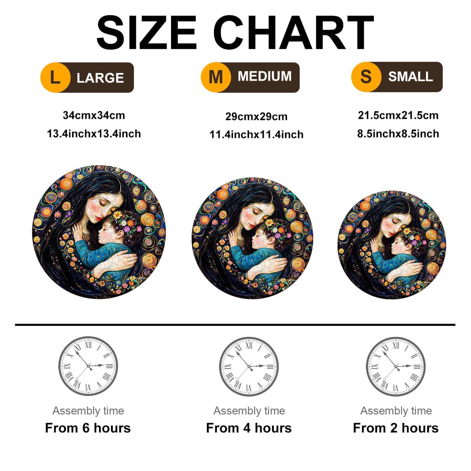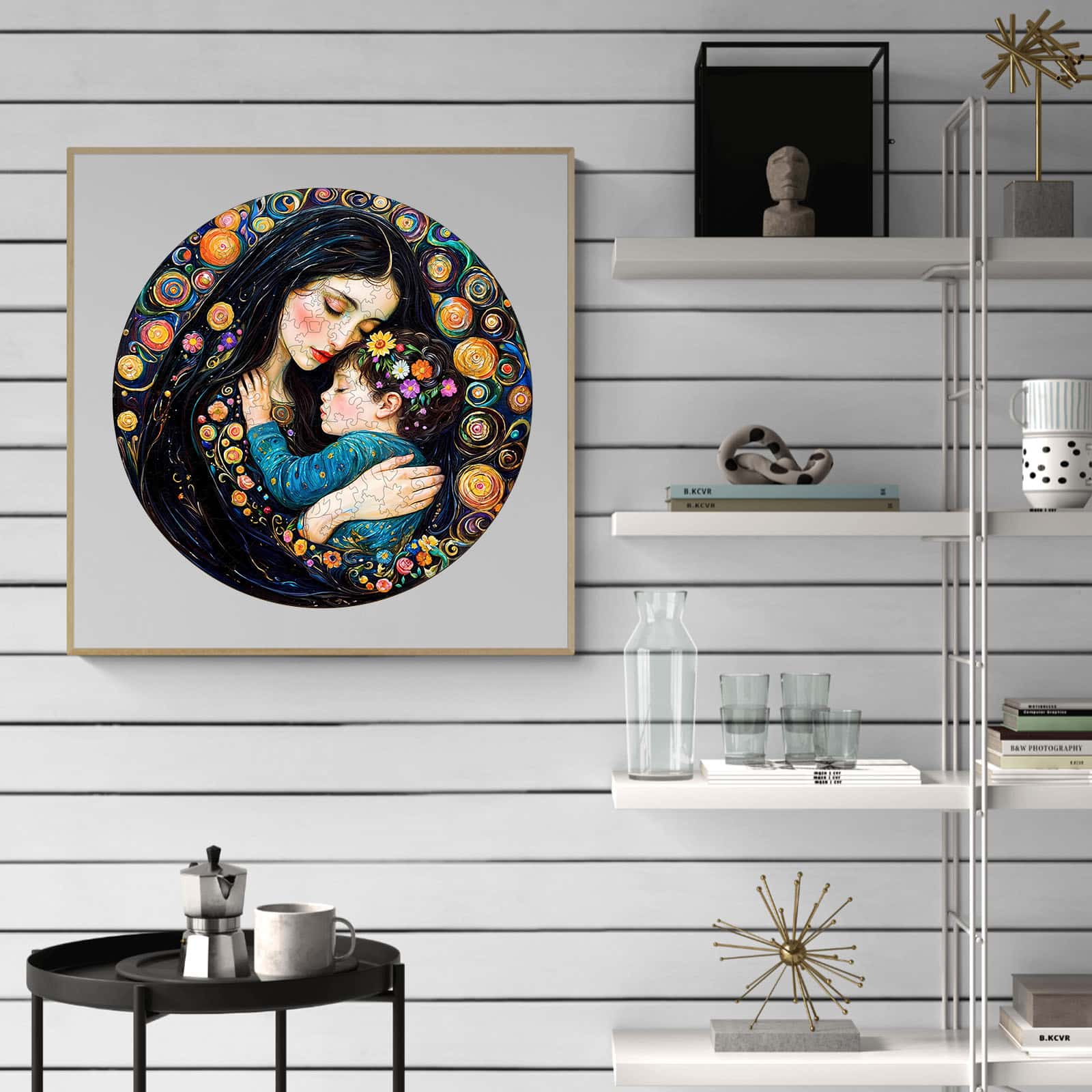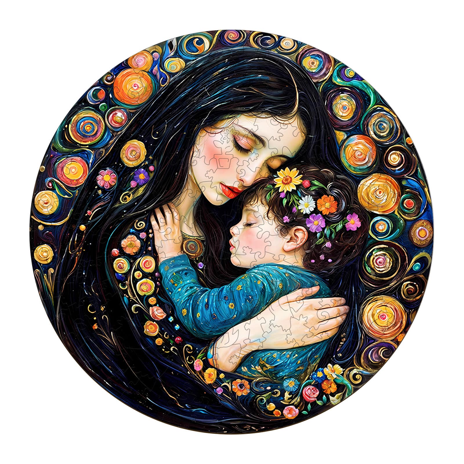 Immerse yourself in the beauty of this premium wooden puzzle, featuring an enchanting circular design that showcases a heartfelt embrace between a mother and child. Inspired by classical art, the intricate details and vibrant colors bring this masterpiece to life, making it a joy to assemble and a stunning display piece once completed.