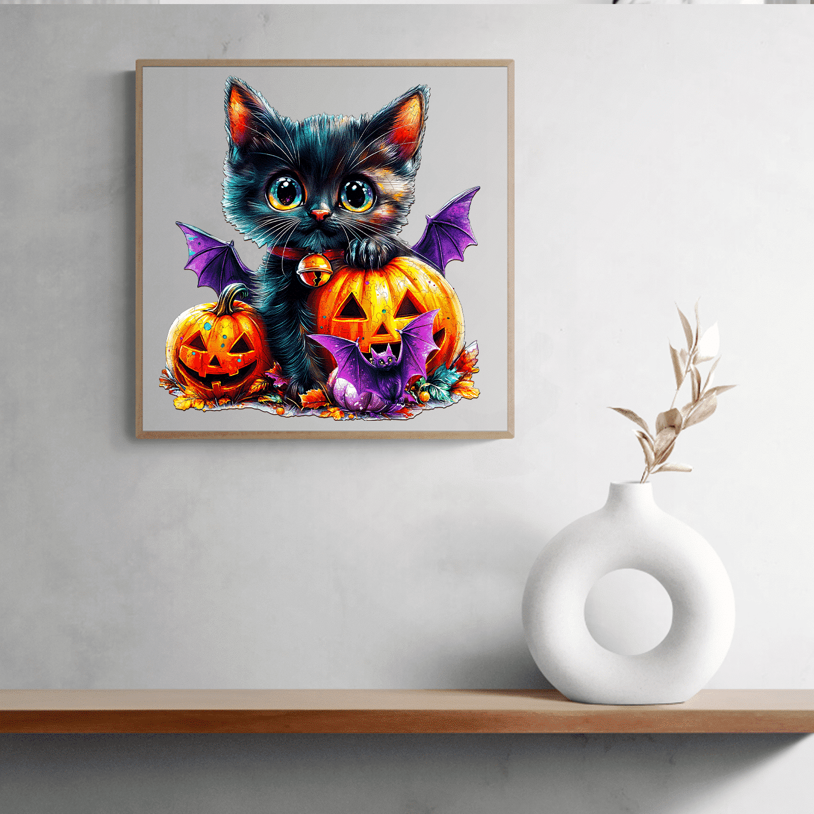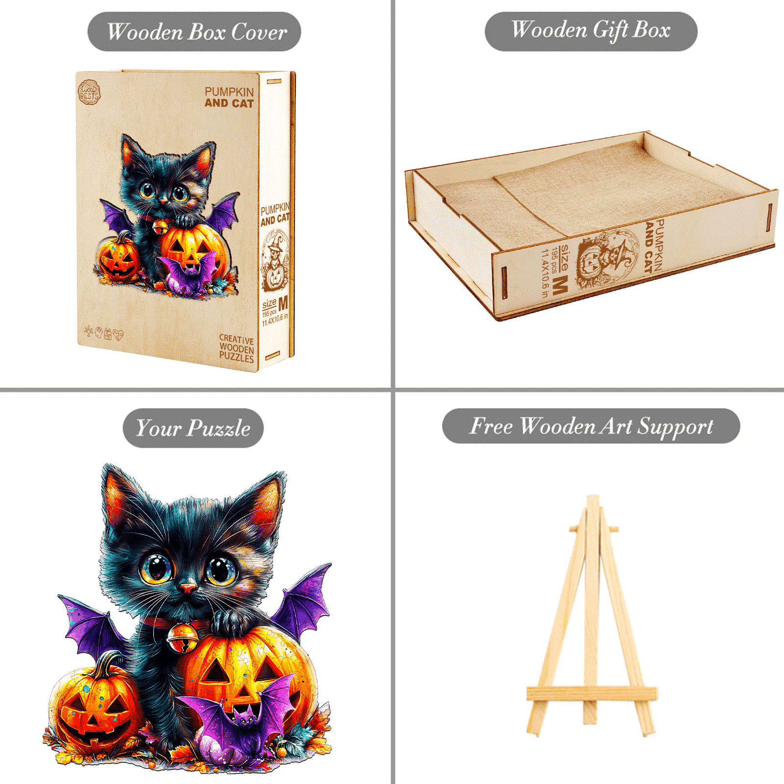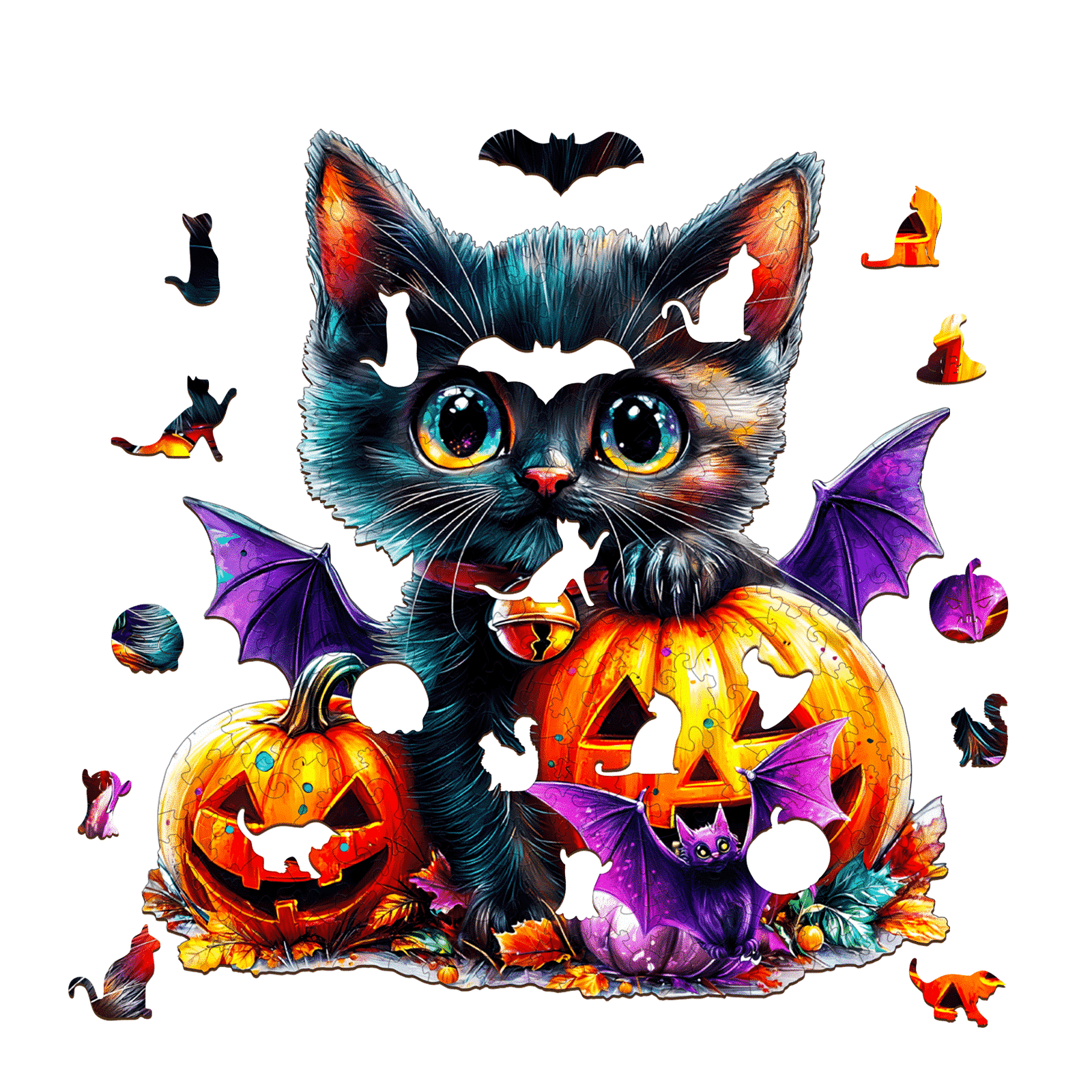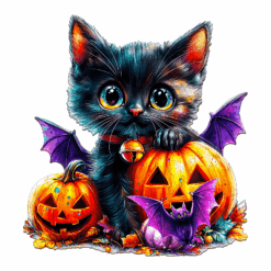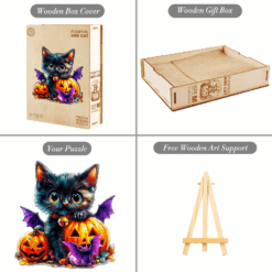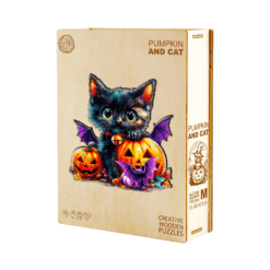 Wooden Jigsaw Puzzle-Pumpkin and Cat