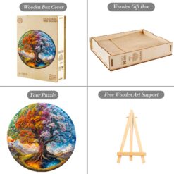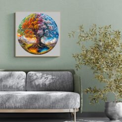 The Tree of Life is a powerful symbol found in various cultures and spiritual traditions. It represents the interconnectedness of all life, growth, and the cycle of life, death, and rebirth. The roots of the tree reach deep into the earth, symbolizing grounding and connection to the physical world, while its branches stretch toward the sky, representing aspiration and spiritual growth. This Seasonal Tree of Life Puzzle has leaves of many different colors, representing the forms corresponding to different time periods in life