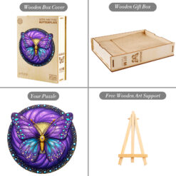 Unfold the magic of transformation with the Kaayee butterfly wooden puzzle, a dazzling fusion of color, symmetry, and cosmic charm. Featuring a radiant butterfly with shimmering violet and turquoise wings, set against a swirling galaxy of deep purples and golden stardust, this round puzzle is both mesmerizing and meditative.Crafted from premium wood with precision-cut pieces, this puzzle is as much a piece of art as it is a mindful activity. Whether displayed or assembled again and again, it brings a sense of wonder, elegance, and inner calm to any space.Ideal for dreamers, nature lovers, and anyone who finds beauty in the details.