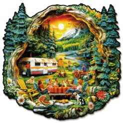 Immerse yourself in the beauty of nature with this Wooden Jigsaw Puzzle featuring a picturesque lakeside camping scene. Perfect for puzzle enthusiasts, nature lovers, and families, this puzzle brings the serenity of the outdoors into your home, offering a delightful and relaxing activity.Bring the charm of a perfect summer day indoors with this Wooden Jigsaw Puzzle. Whether for yourself or as a thoughtful gift, it promises hours of entertainment and a beautiful keepsake.